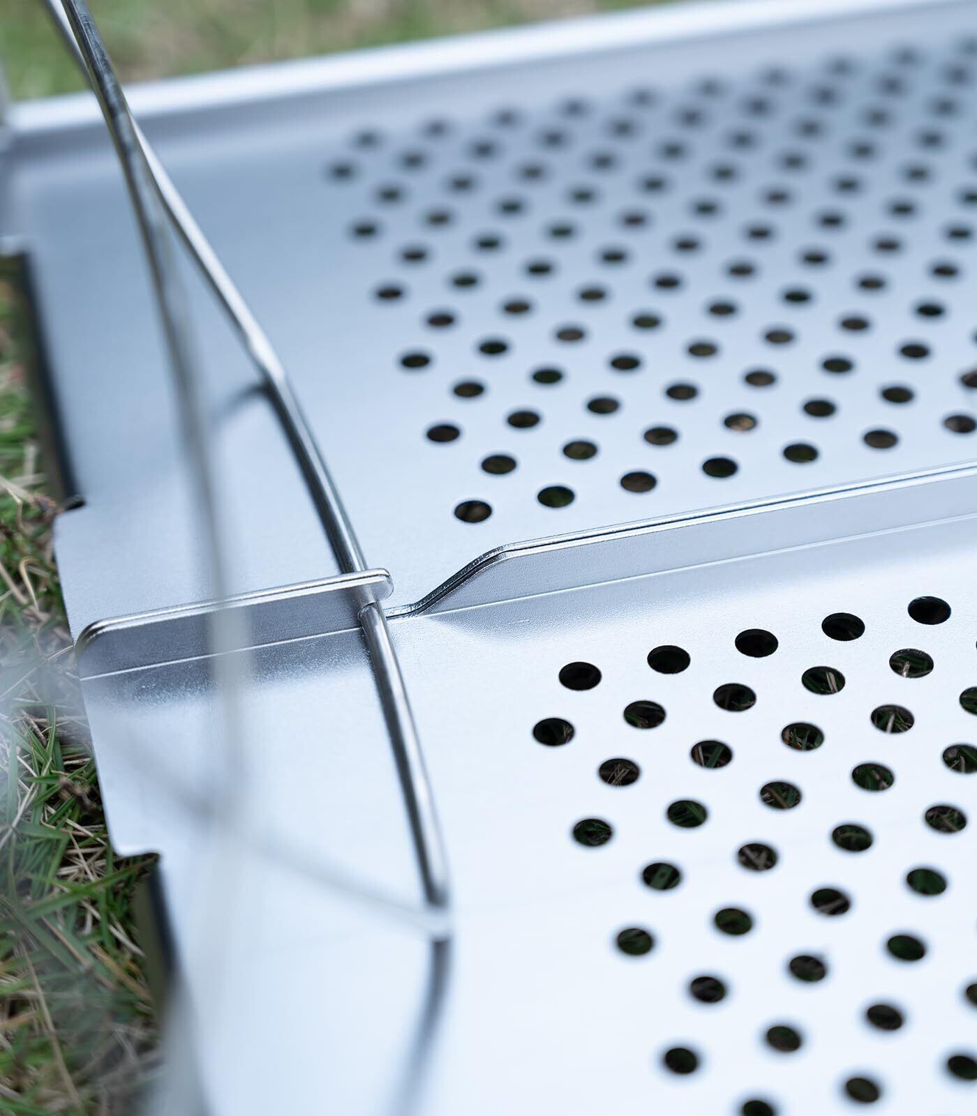 【高強度、耐熱、良い耐久性】高強度ステンレス鋼足フレームでテーブルを一旦セットアップできたら、搬送の時、簡単にバラバラがなれない、地面からも低い、高いテーブルより安定です。アルミ天板の中空デザイン、超軽量且つ通気性が良い、お湯や水が溜まらない、コーヒーやティーテーブルとして使用できます。天板表面サンドブラスト・アルマイト処理で防水、防錆、耐腐食、耐高温、傷も付きにくい、良い耐久性で長持ちです。