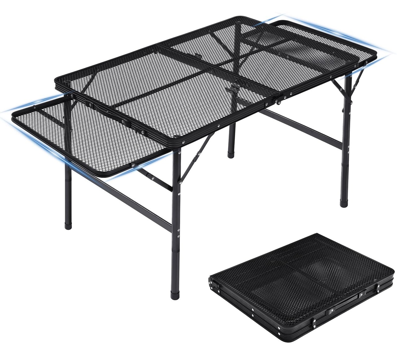 【130CM---高さ2段階調整】130cmの大きめサイズで、60.5cmと40cmの2段階高さ調整が可能です。ご注意ください、90cmの小さめサイズは調整できません。各高さの椅子と同時に使用でき、様々な用途に合わせ、自由自在に高さを変化させることができます。 屋外グリルスタンドテーブルの重量はわずか2.2kg/4.4kgです。軽量で折りたたんだ後のサイズが小さいため、持ち運びや保管が簡単です。また、数秒でインストールすることができます。すばやく折りたたんで、キャリーハンドルで持ち運びできます。