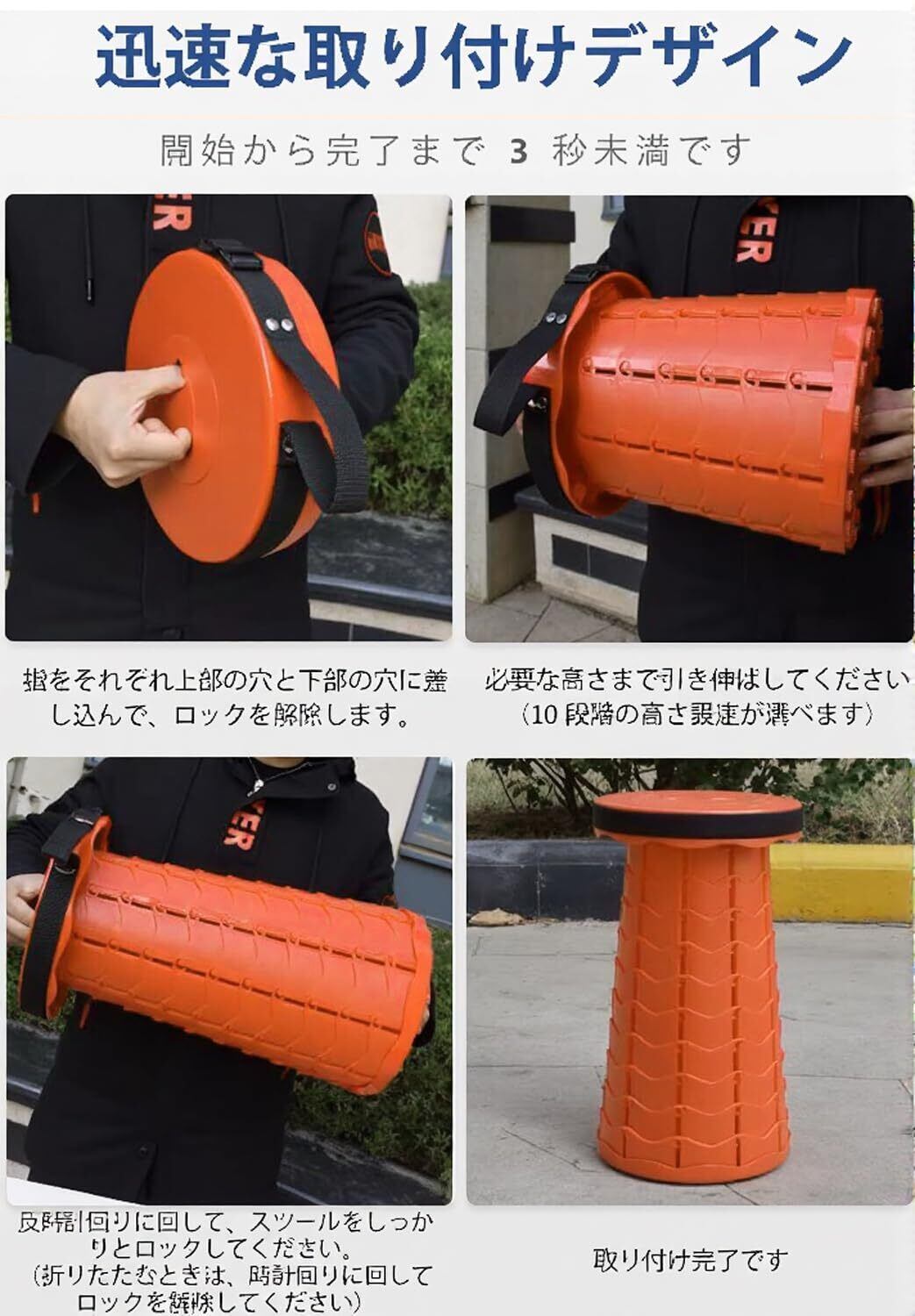 伸縮凳 軽量折りたたみ椅子 高さ調整可能 キャンプチェア 一秒開閉式 屋内屋外兼用 アウトドア用チェア 釣り/バーベキュー/旅行/コンサート対応 コンパクト収納 (ブラック)