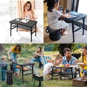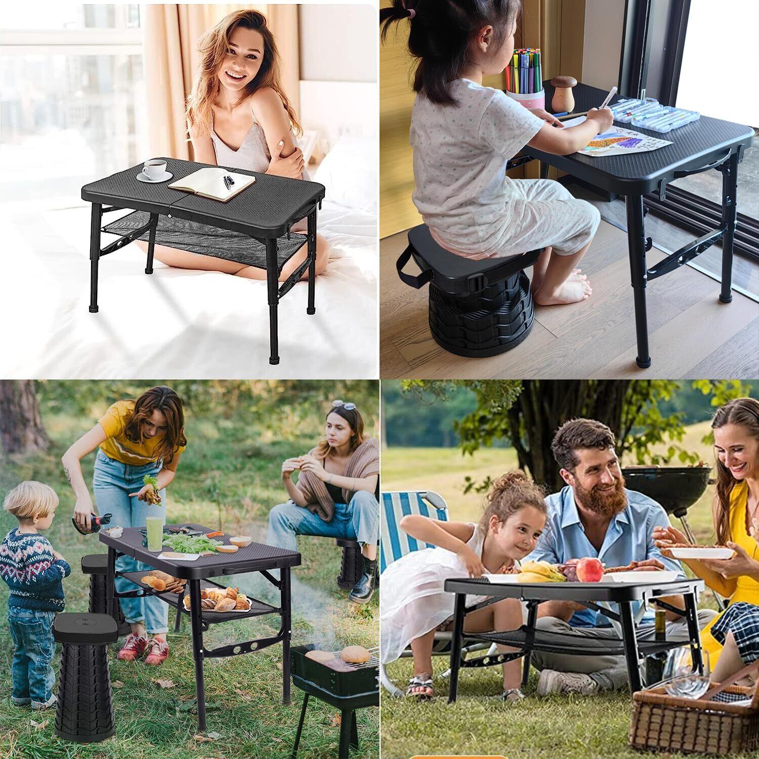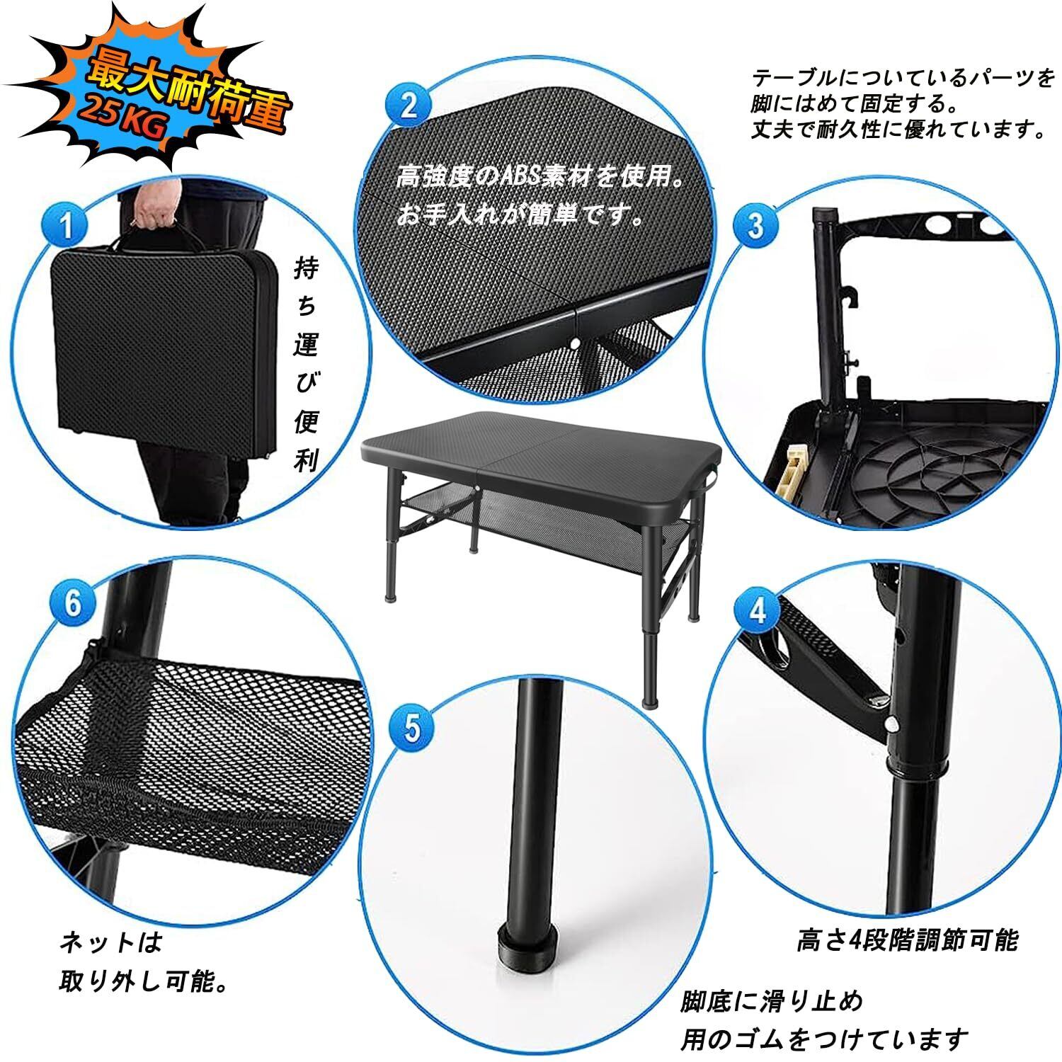 【新春セール】BIKYO 折りたたみテーブル ピクニックテーブル アウトドア テーブル キャンプ テーブル 折りたたみ 軽量 コンパクト 高さ4段階調整可能 耐荷重25KG (折りたたみテーブル/黒)