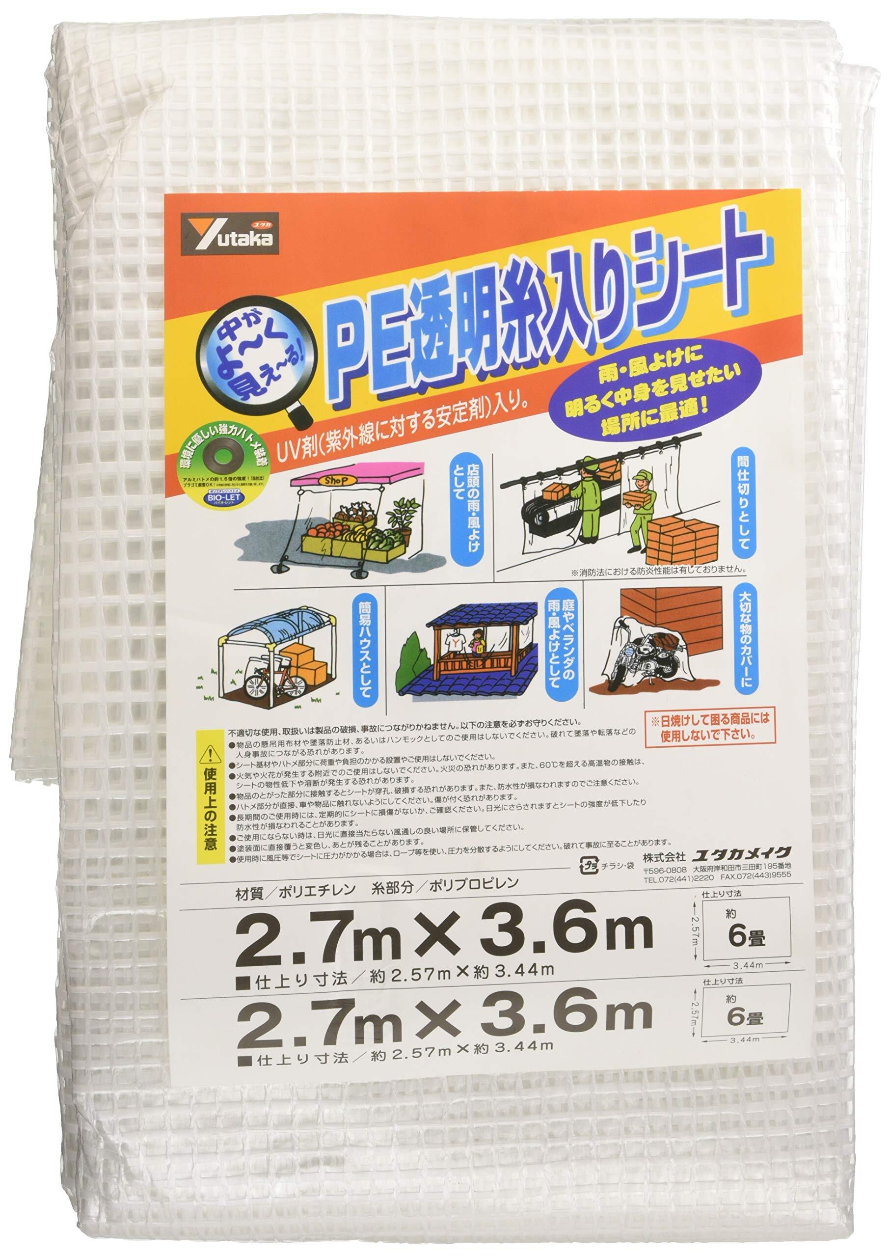 ユタカメイク PE透明糸入りシート 2.7m×3.6m B-312 間仕切り 雨除け 風除け 埃除け