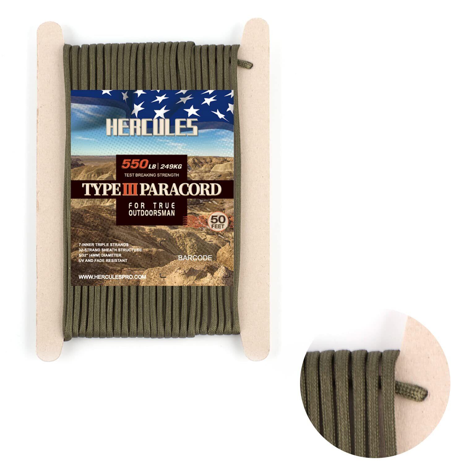 HERCULES パラコード ガイロープ キャンプロープ テントロープ アウトドア 用 耐荷重250kg 7芯 アーミーグリーン 15m