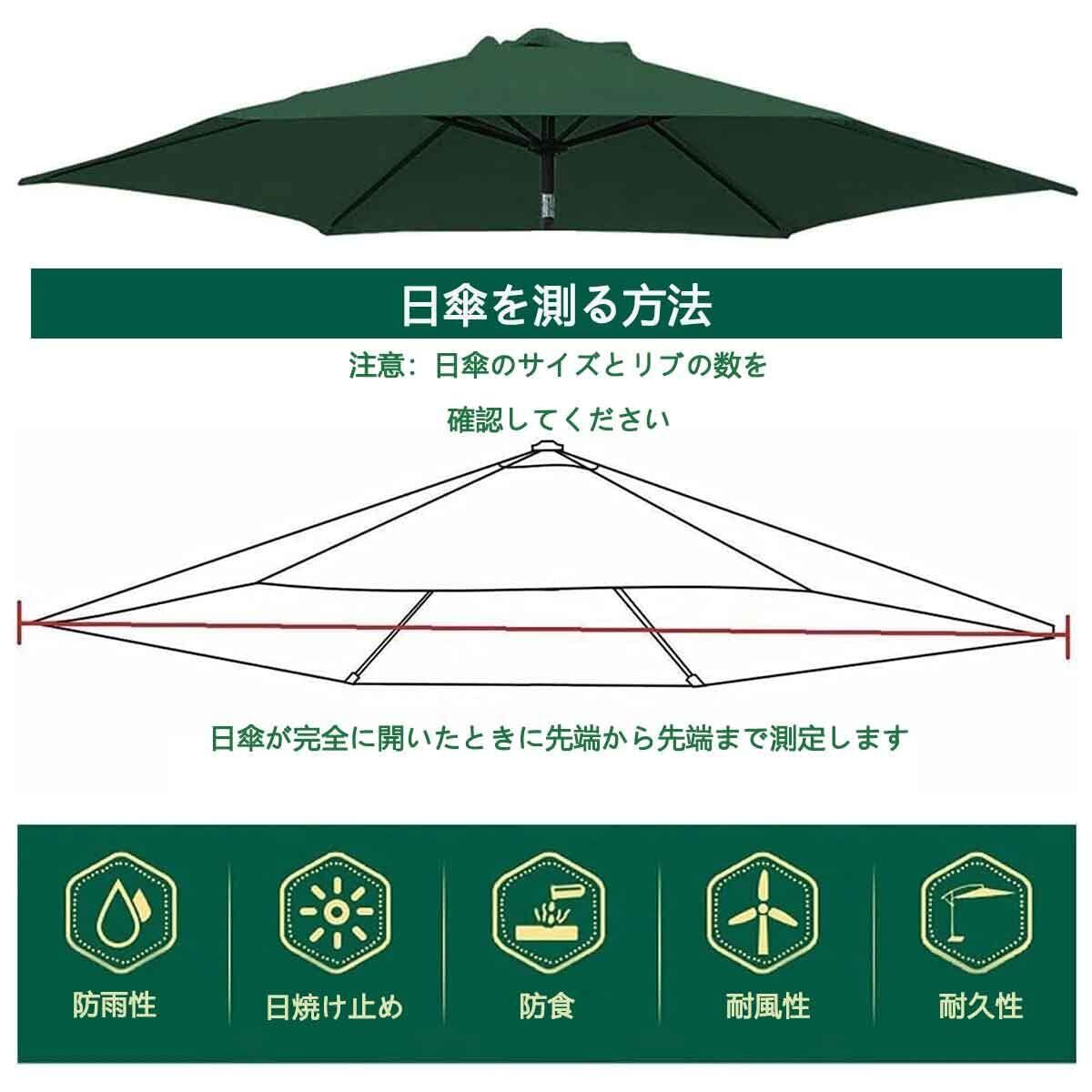 パラソル傘布 直径2m/2.7m/3m 日除け UVカット 汎用 大型 傘布 交換用 サンドガーデンパラソルビーチテラス カンチレバーパラソル シェーディング 交換用傘布(Size:200cm/6本傘の骨,Color:緑)