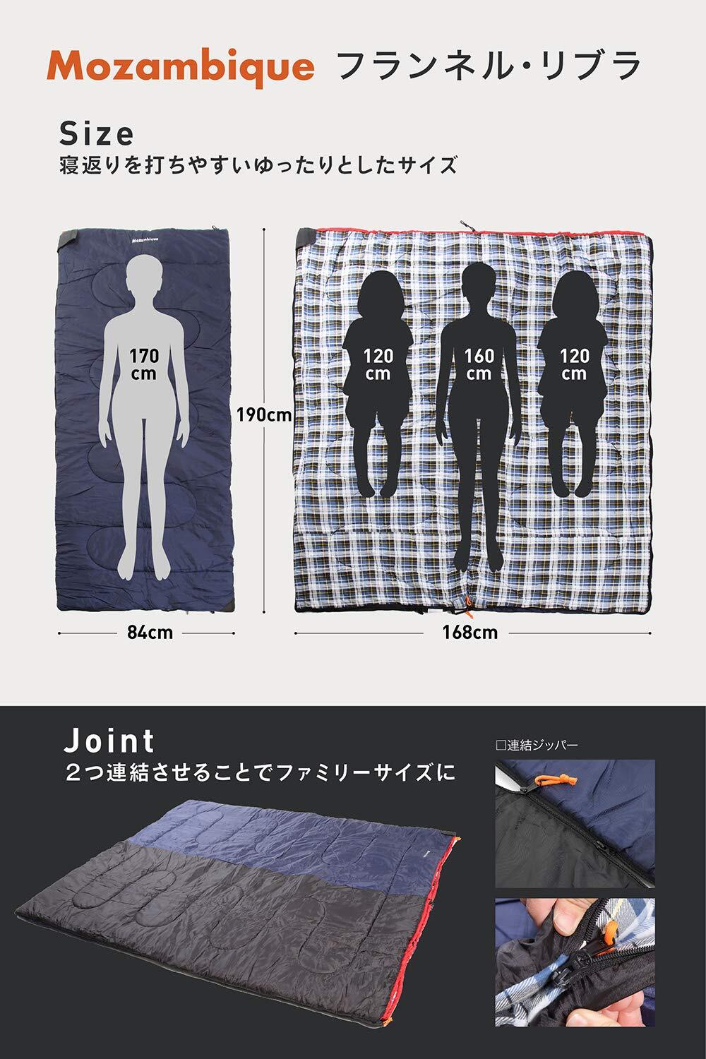 【特価商品】Mozambique(モザンビーク) 寝袋 シュラフ コンパクト 封筒型 キャンプ 登山 車中泊 防災用 丸洗い 綿 連結可能【肌ざわりの良いフランネル生地で寝心地アップ】