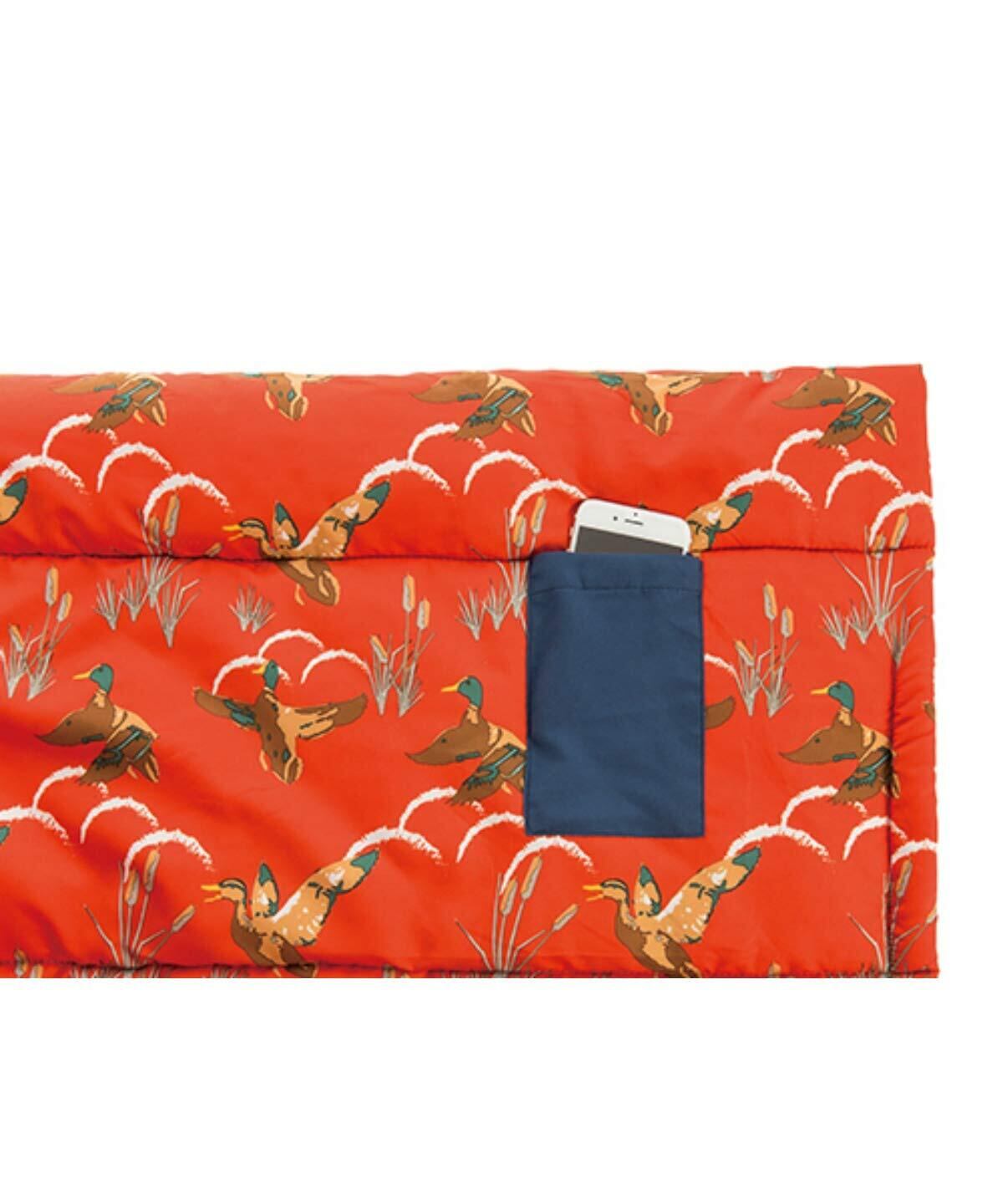 【ゆったり眠れる封筒型】幅84㎝のゆったりサイズなので、自宅の布団のような抜群の寝心地を提供します。ファスナーをすべて開けることで1枚の掛け布団のように使用することもできます。