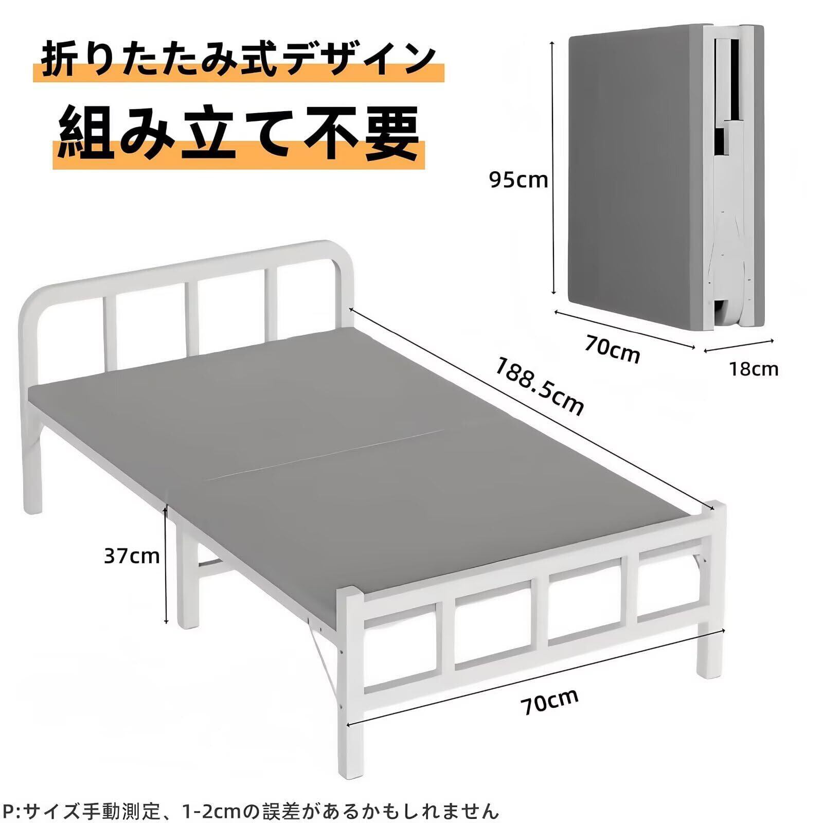 【折りたたみ式デザイン】シングルベッドは、簡単に折り畳むデザインを採用。使用時はフルサイズのベッドとして快適に寝れる一方、非使用時はコンパクトに折り畳むことが可能。折りたたんでおけば、場所を取らず、必要な時にすぐに利用できるため、効率的に空間を活用できます。