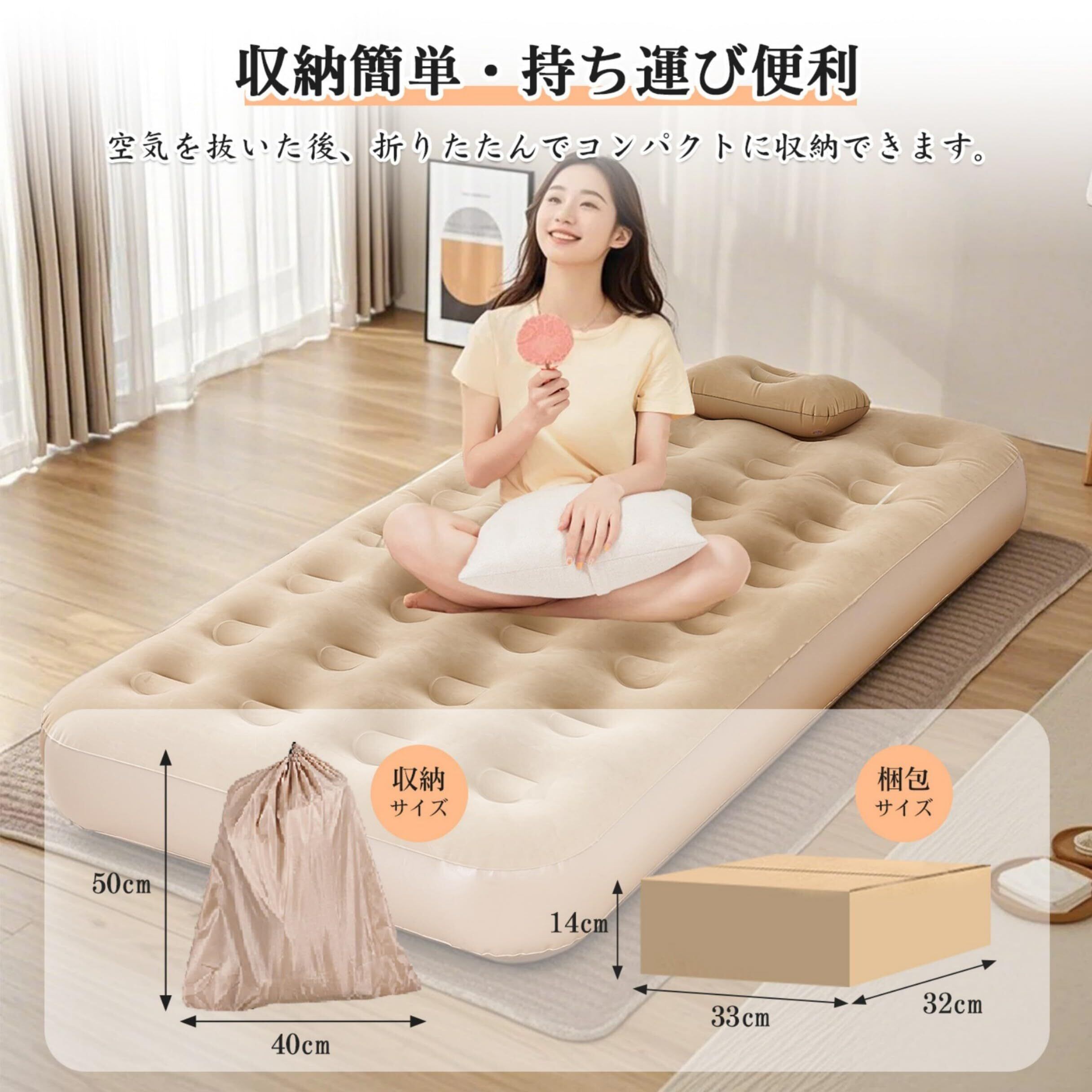 【人気商品】VECELO エアーベッド エアーマット シングル 電動ポンプ内蔵 ワンタッチで空気抜け 折り畳み式 USB充電式 自動膨張 25CM極厚 耐荷重300kg キャンプ 簡易ベッド 防水性・通気性・快適性 枕付き 収納袋付き 日本語取扱書 来客用/防災用/車中泊/家庭用/アウトドア 190×100×25cm ベージュ【快適な夜を提供する理想のマットレス!】