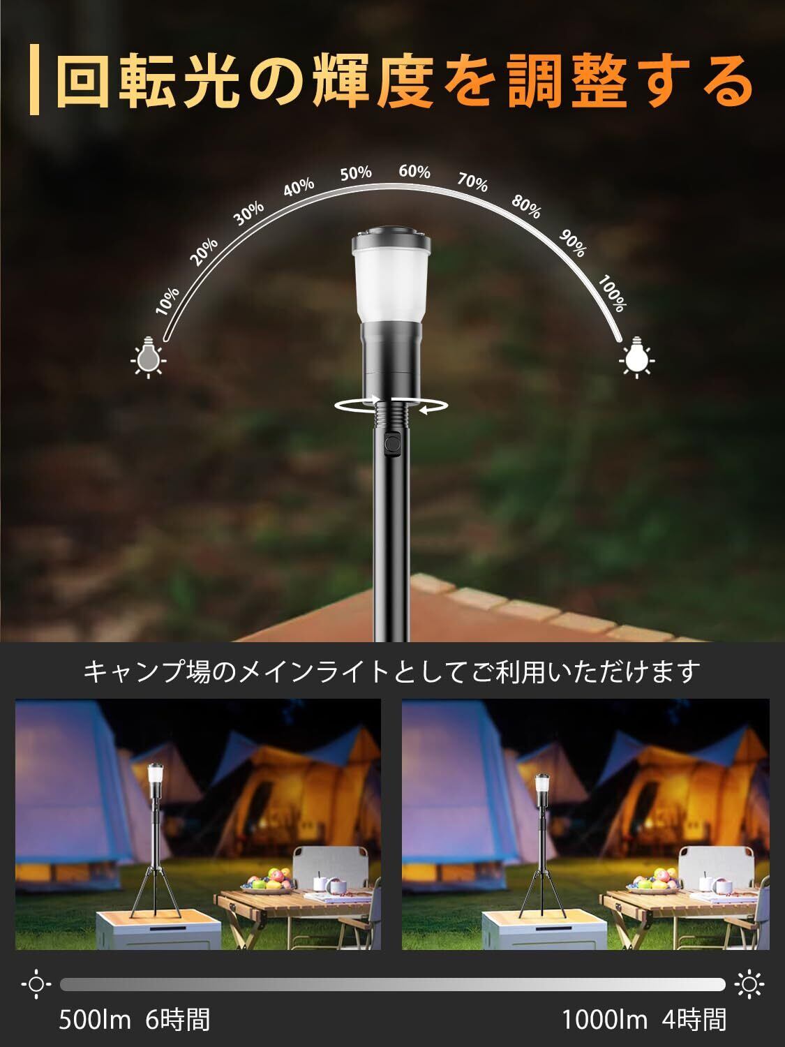 LEDランタン キャンプライト・懐中電灯機能・Type-C充電式・3つの照明モード・多機能・アルミ合金製三脚・超高輝度LEDビーズ・IPX7防水防塵 キャンプ/緊急照明/アウトドア活動/地震/停電/夜釣り/ハイキング/防災用 日本語取扱説明書