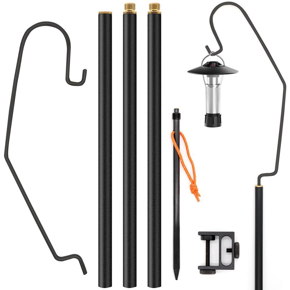 【軽量化】ランタンスタンドは3段のねじ込み式ポール+フックで設計されており、取り付けたままのサイズは132cmで、重量は約300gです。従来の4つのセクション式ランタンフックに比べて、取り付けが簡単で軽量です。必要に応じて高さを調整することができ、(打ち込み式)高さの設定範囲は60cm、96cm、132cmです。ランタンスタンド テーブルと組み合わせて使用する場合、ランタンの高さを53cm、89cm、125cmに設定できる。