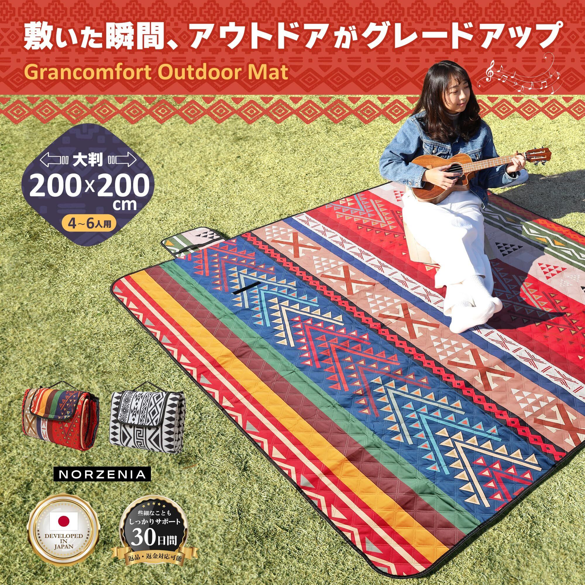 【敷くだけ、ぐんと素敵に】 レジャーシート 厚手 ふかふか 3層構造 民族柄 200×200 cm 大判 キルティング 生地 撥水 洗える | 軽量 コンパクト インナーシート アウトドア キャンプ ピクニック [新登場2025年2月]