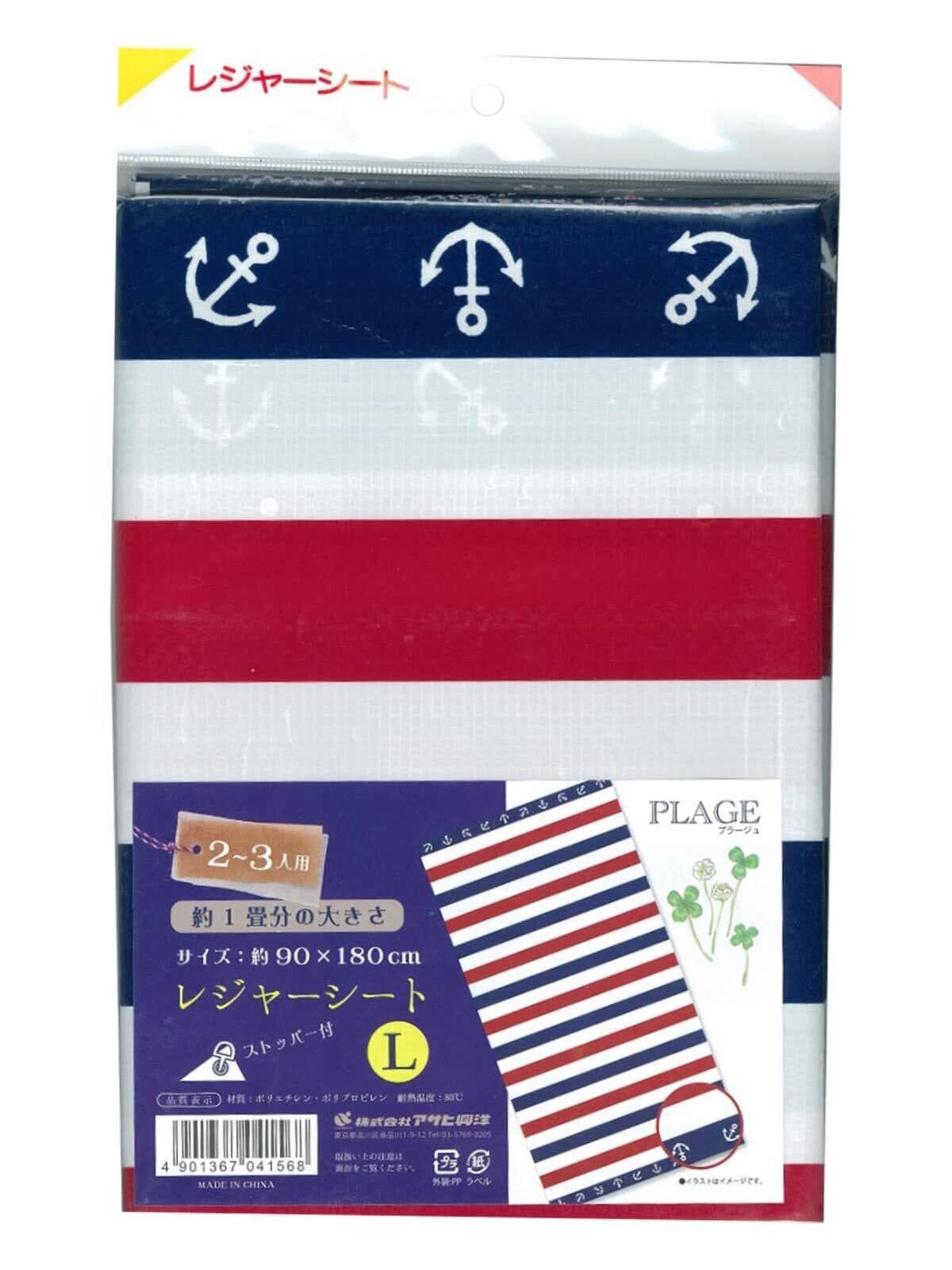 【新着商品】アサヒ興洋 レジャーシート 2~3人用 90×180cm 1畳 マリンボーダー シートピン付き プラージュ