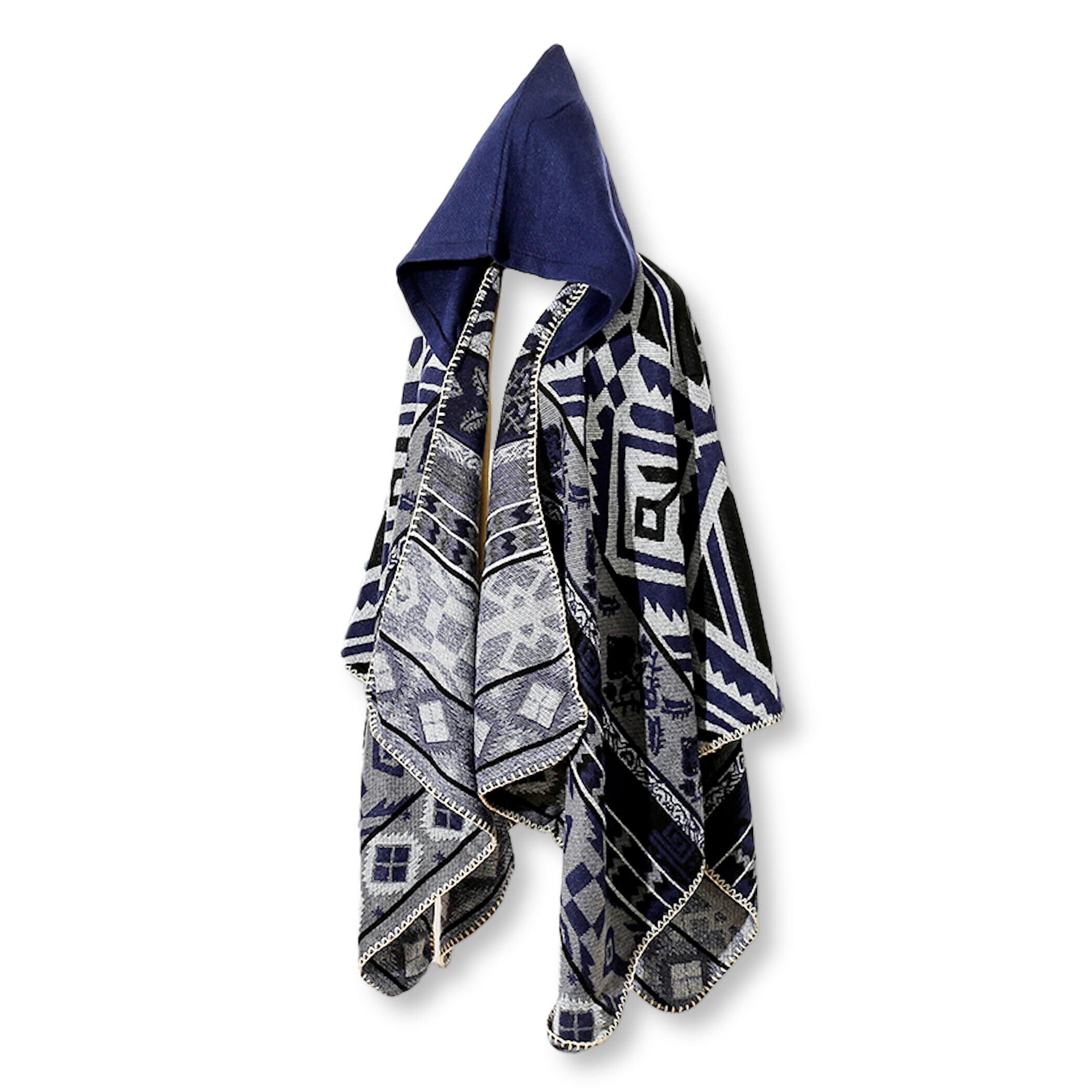 Lezalic フード付き マント アウトドア ブランケット 135x150cm ポンチョ ケープ ストール ひざ掛け オルテガ ユニセックス ルームウェア 普段着にも 防寒 (ネイビー)