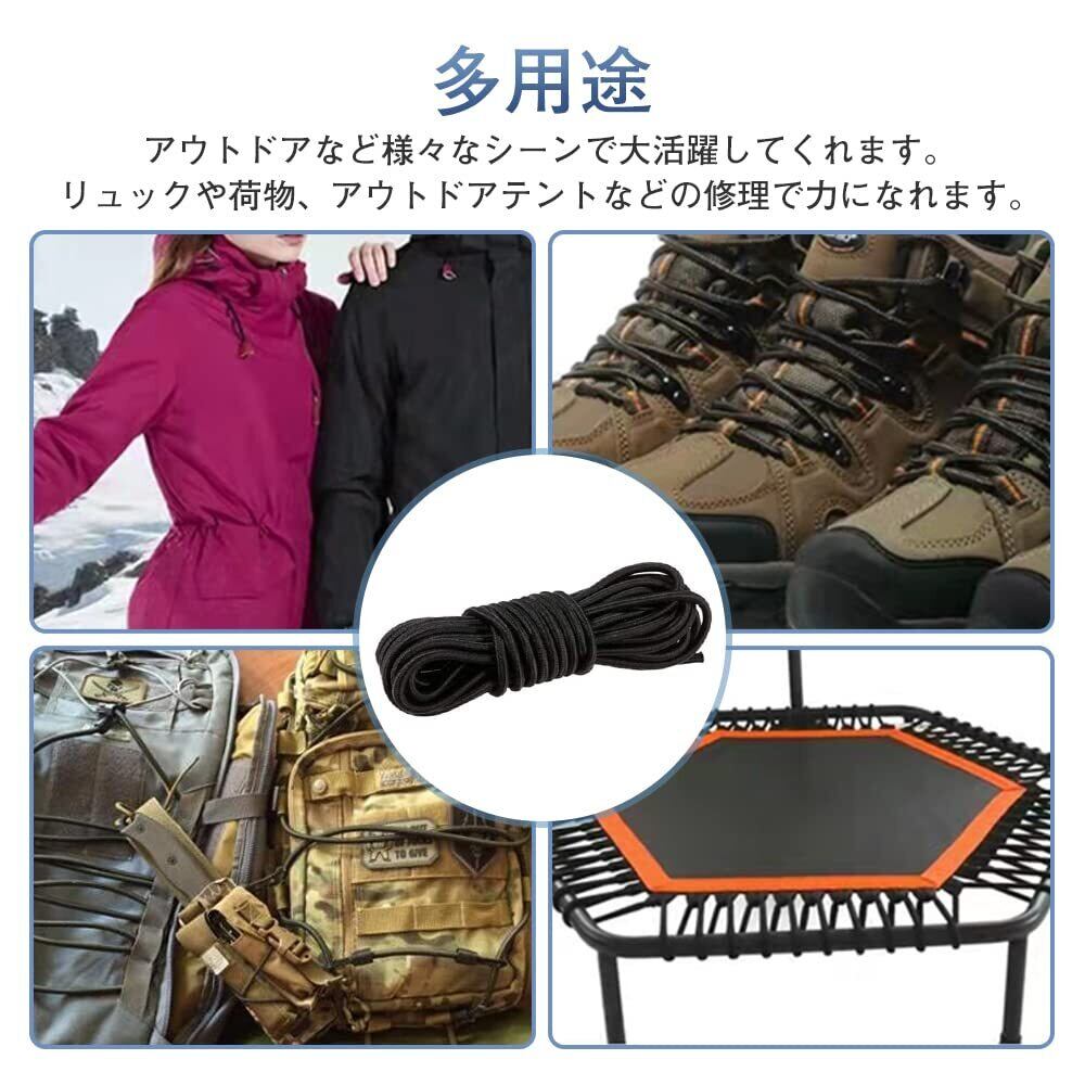 【高品質材質】表面:ポリエステル 内部:ゴム。ゴムロープは表面が耐摩耗性に優れ、内部は数十本のゴムが束になった構造で伸縮性が高いので。キャンプ パラコードは実用性に優れたいい商品でした。