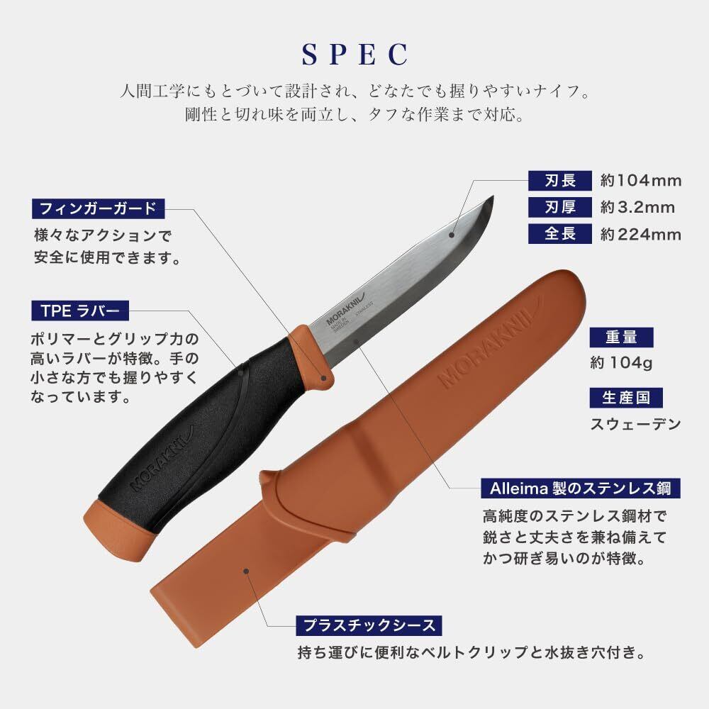 【数量限定】モーラナイフ コンパニオン ヘビーデューティー ステンレス Morakniv | ナイフ キャンプナイフ キャンプ アウトドア キャンプ用品 アウトドア用品 料理 調理 釣り 登山 防災 ステンレス バトニング 薪割り 刃厚3.2mm ソロキャンプ (ブラック)