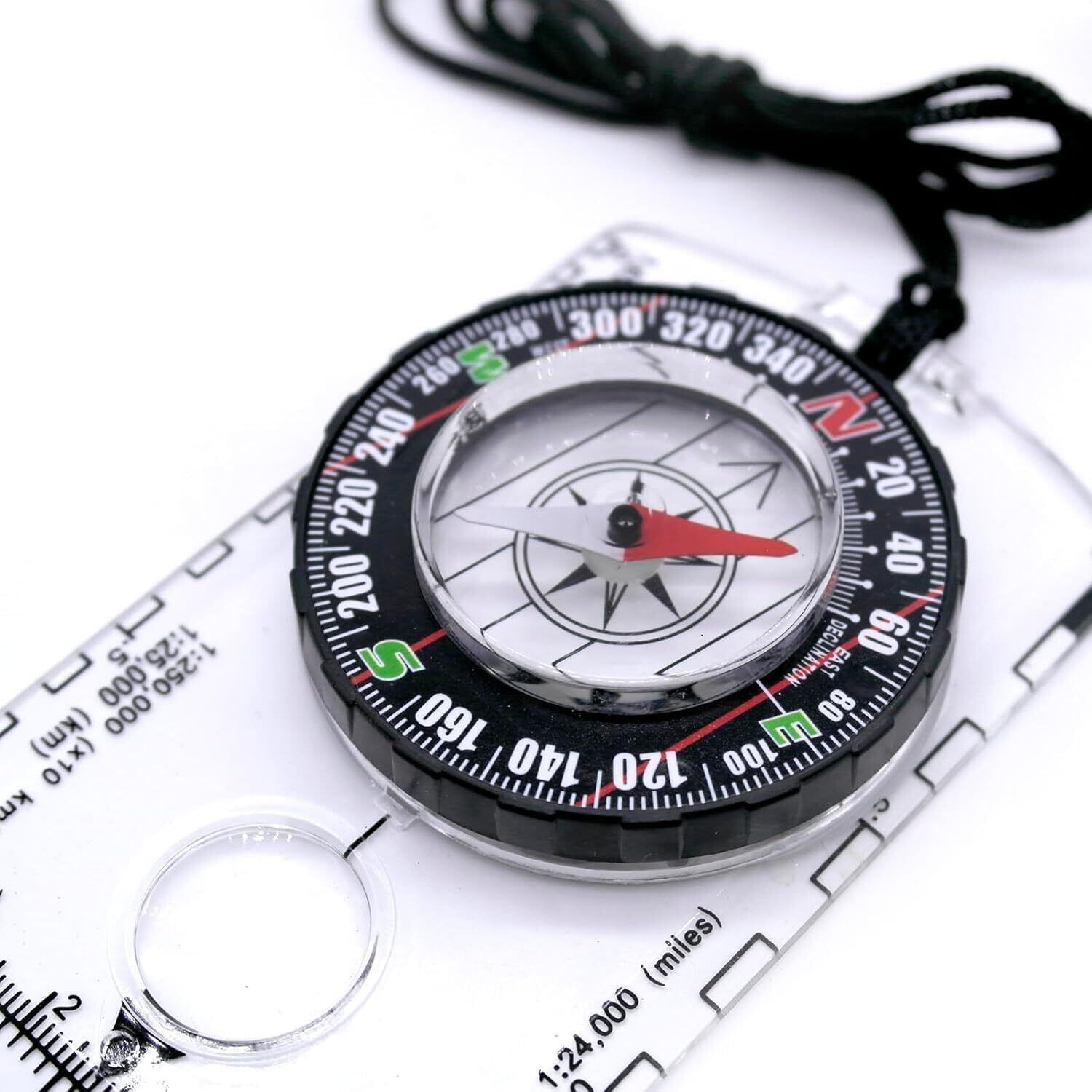 【多機能で使いやすい】計測用の定規付きなのはもちろん、本体にルーペがついおり、地図上の小さな文字も楽々読めます。この小型のコンパスは、素晴らしい傘紐が付いているので、首からぶら下げることができます。地図と組み合わせる事で、山の向こうに隠されたスポットを地図で確認することがができます。