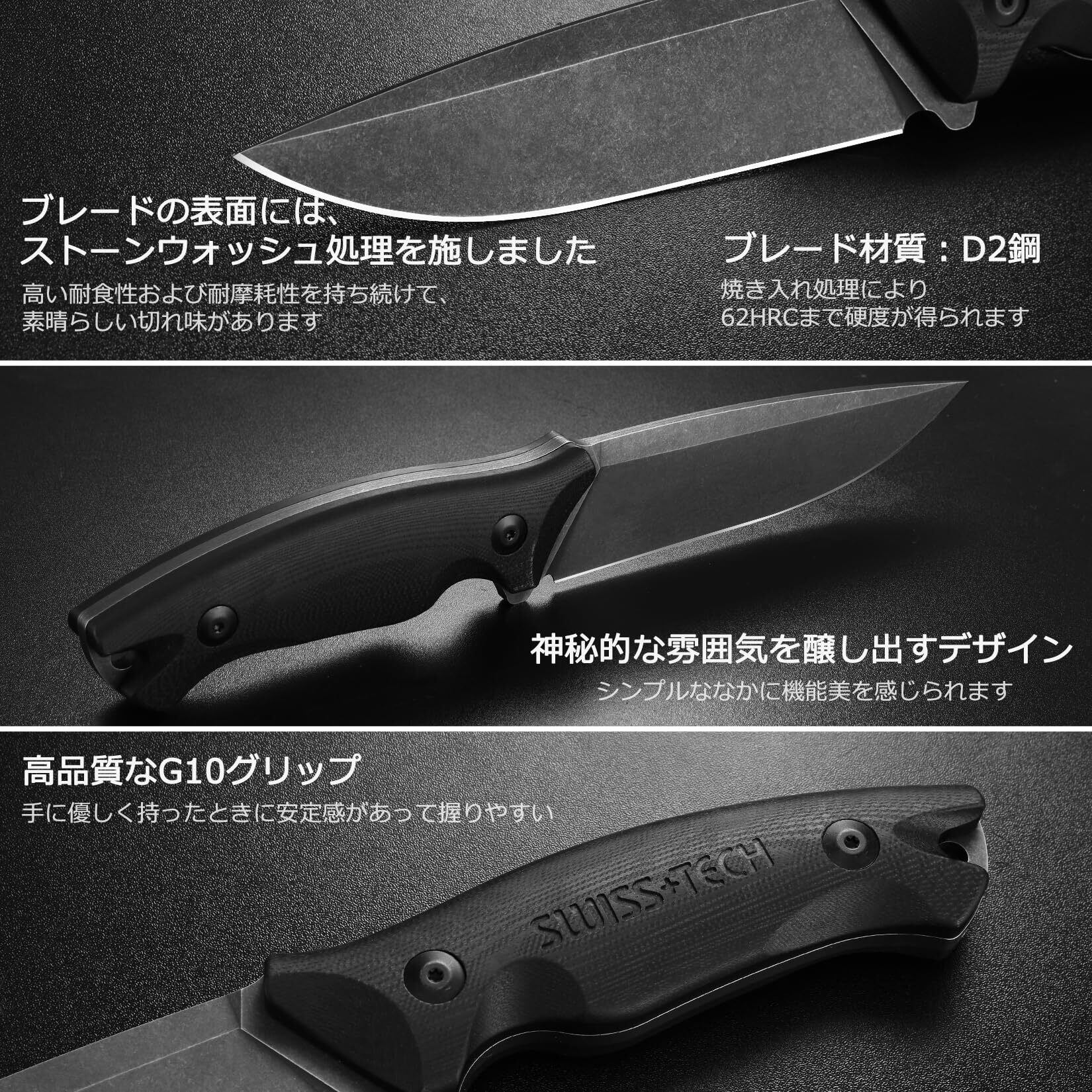 SWISS+TECH シースナイフ サバイバルナイフ D2鋼 ストーンウォッシュ G10ハンドル アウトドア DIY 登山 キャンプ 防災 釣り 専用シース付き