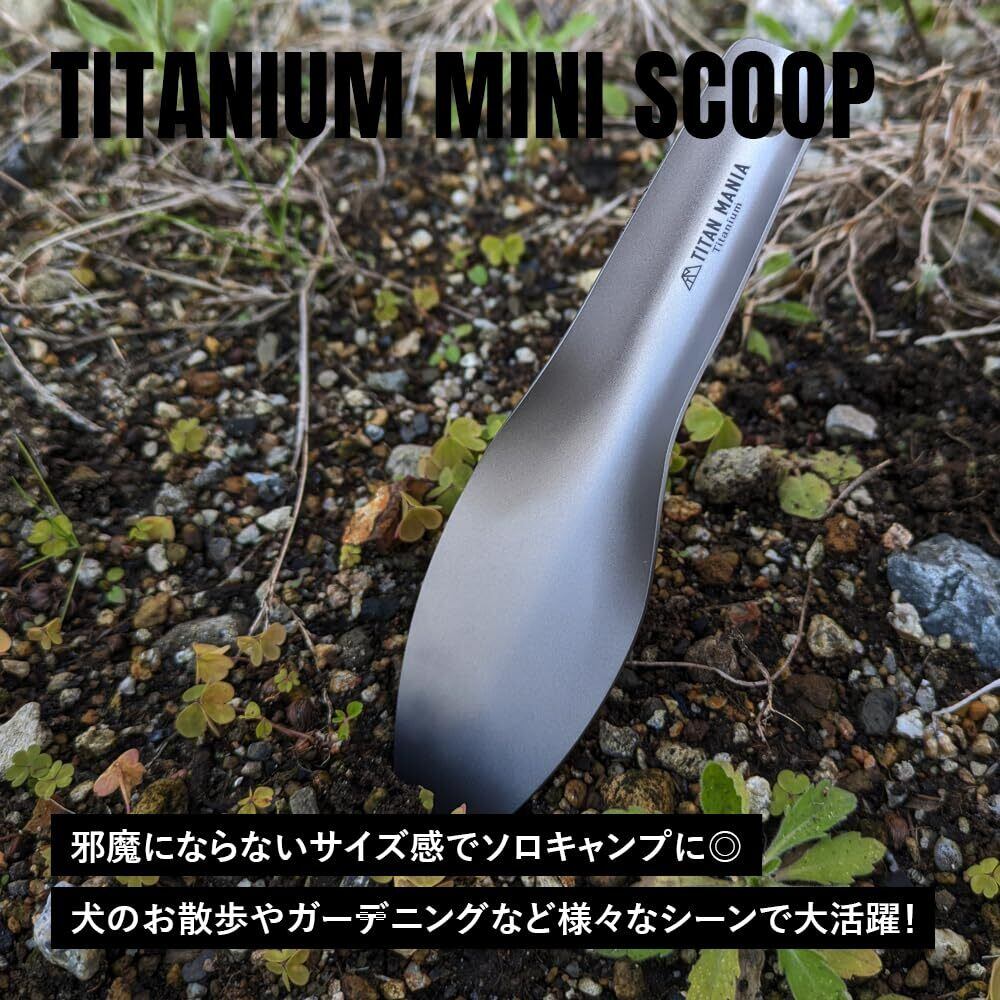コンパクトで軽量!手のひらサイズで携帯性の高いチタン製ミニスコップ。 テント設営時の地ならしや小石の除去、簡易トイレの設営、焚き火の灰の掃除などに便利です。