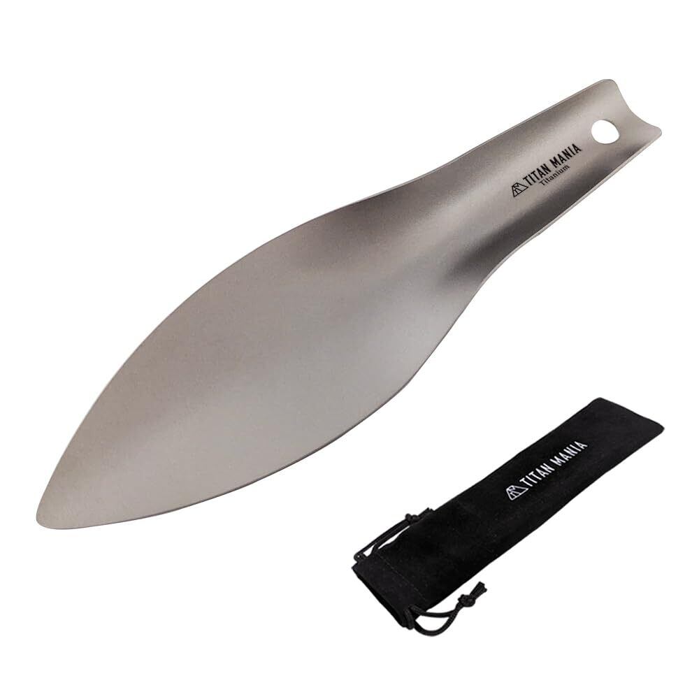 TITAN MANIA(チタンマニア) スコップ チタン製 軽量 頑丈 小型 携帯 スリム ミニ スリム シャベル ハンドスコップ こて アウトドア 便利 防災 収納袋付き キャンプ用品