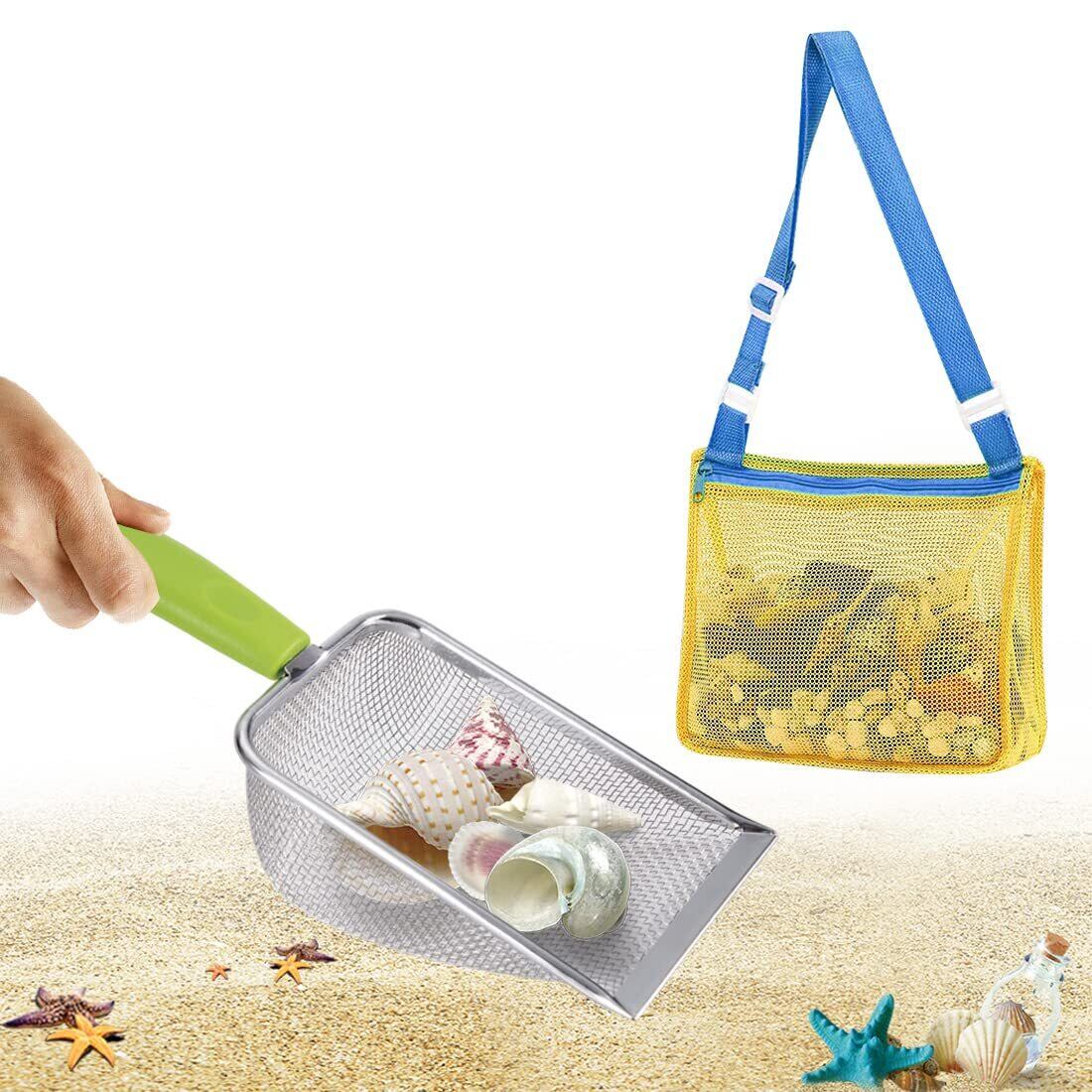 【特価セール】Voyyphixa ビーチシャベル+ビーチバッグ 貝殻拾い 貝殻 掘る 潮干狩り 海浜 ビーチコーミング ビーチメッシュシャベル ビーチメッシュバッグ 砂場セット 猫砂スコップ 細かい砂用 (シャベル1個+バッグ1個)