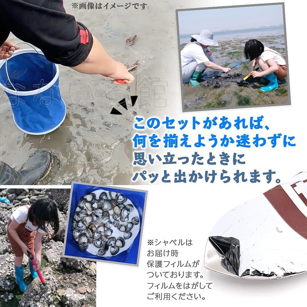 (なないろ館)潮干狩り 4点セット 熊手 スコップ バケツ ネット 貝掘り 貝拾い くまで シャベル アサリ ハマグリ マテガイ レジャー 砂遊び 園芸