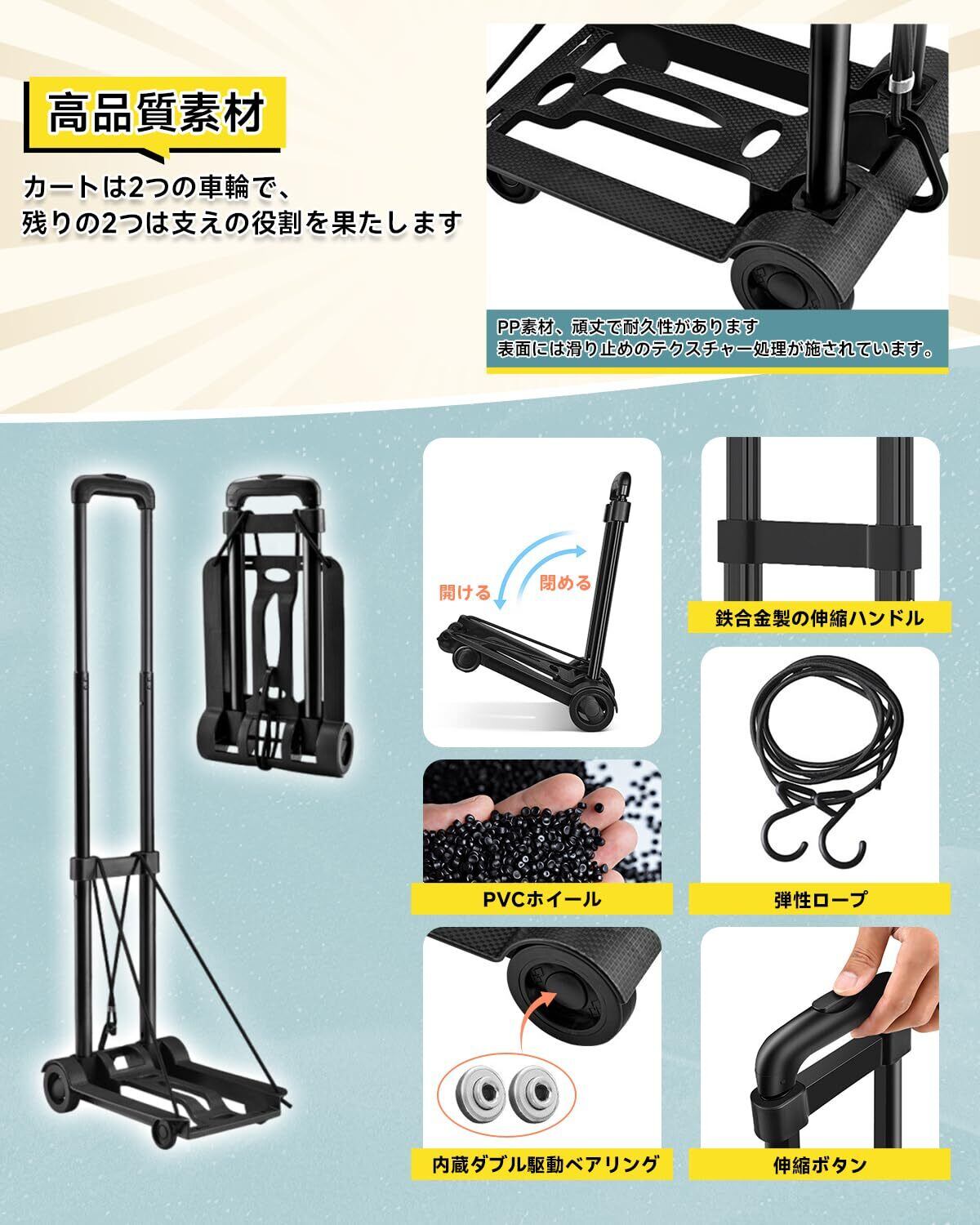 GOODCHI キャリーカート 折りたたみ式 台車 小型 軽量 超コンパクト 耐荷重50kg 固定ロープ付き 買い物 家庭用 キャリーワゴン ミニ (ブラック)