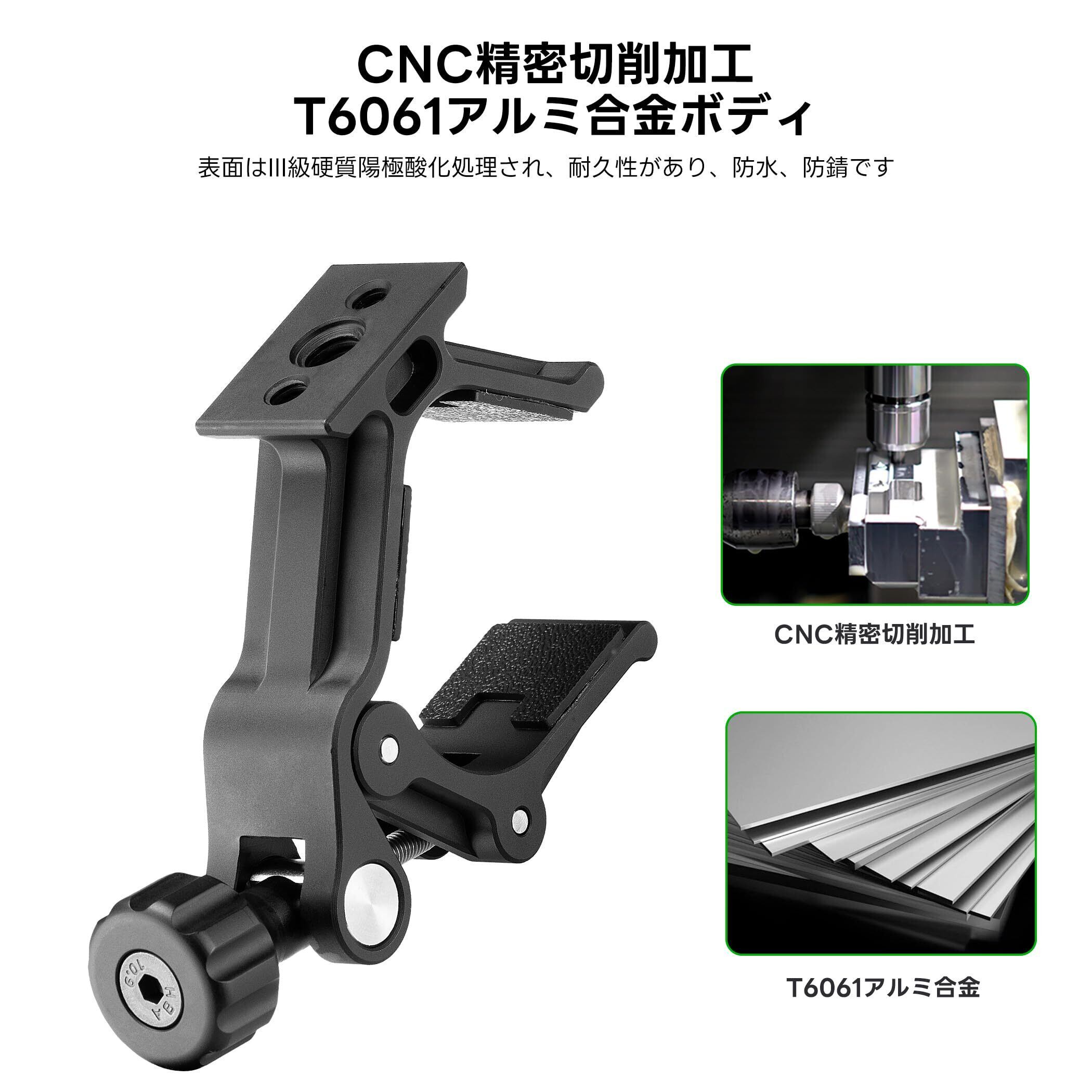 【高品質素材】: CNC精密切削されたT6061アルミニウム合金ボディを採用し、表面には第III級陽極酸化処理が施されており、材料の強度を保証し、耐腐食性と耐摩耗性も備えています。内側に傾いたクランプジョーは双眼鏡をしっかりと固定し、堅固なゴムで覆われているため、双眼鏡を保護し、滑りを防止します。