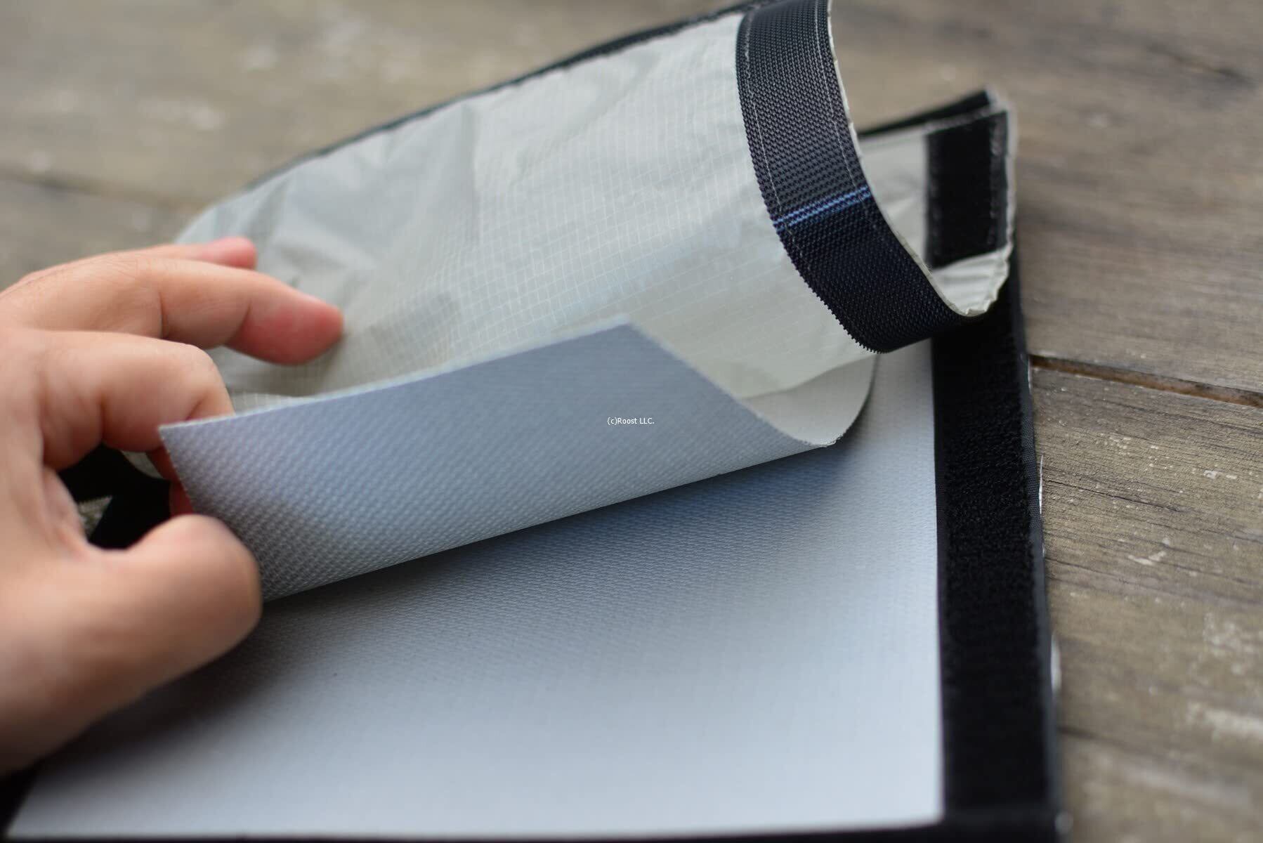 蓋はマジックテープで止めることが可能で、巻いた形でもマジックテープで固定が可能