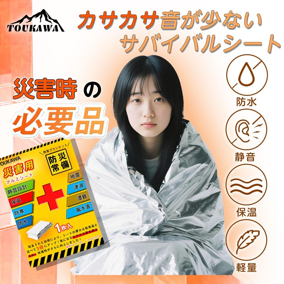 この「TOUKAWA アルミシート」は、緊急時に非常に頼りになる防災アイテムです!防水性、保温性、そして静音設計により、あなたの大切な時間をしっかりサポートします。