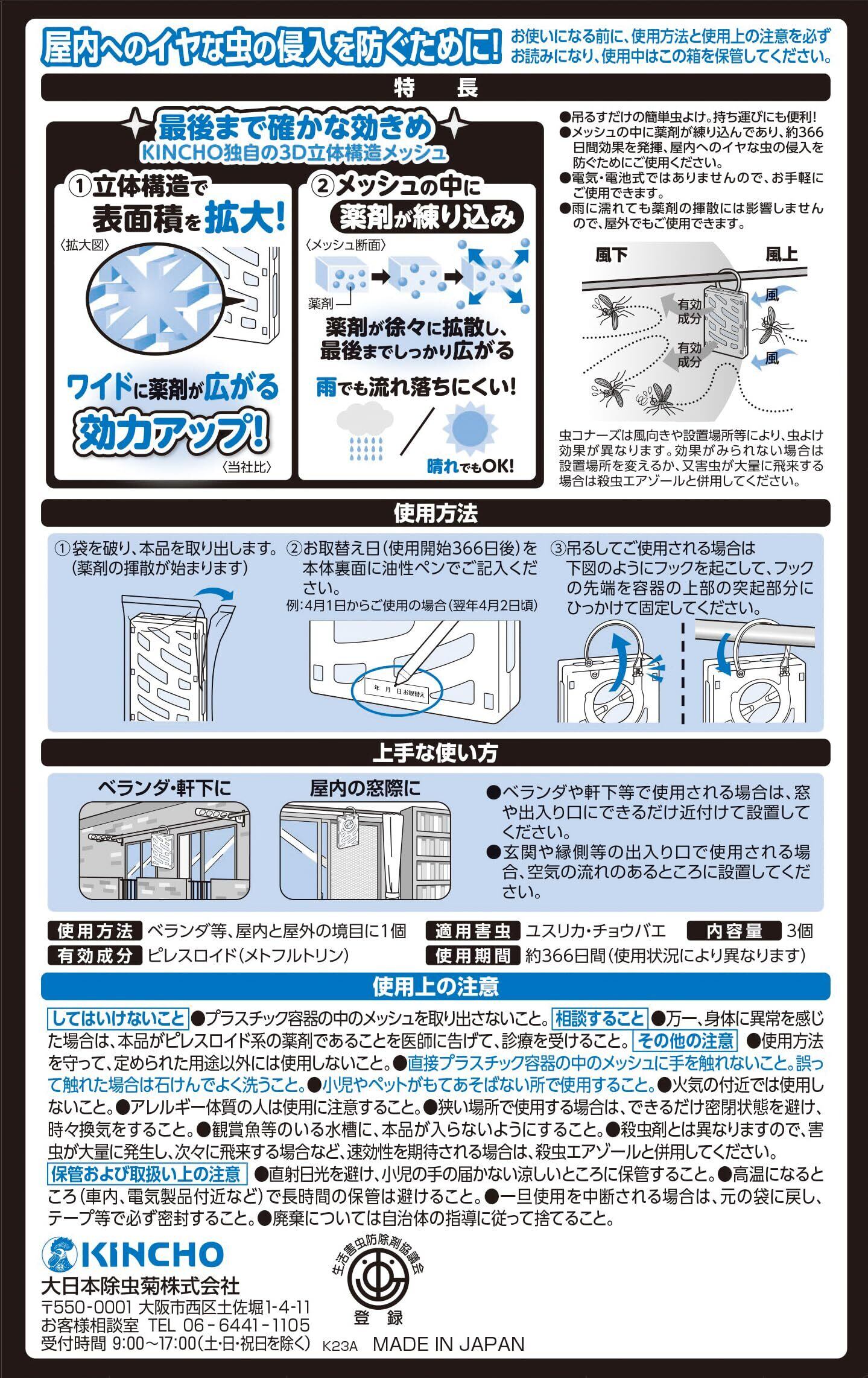 虫コナーズ ベランダ用 吊り下げ 虫除け ネット 366日用 防虫剤 エコパッケージ 3個入