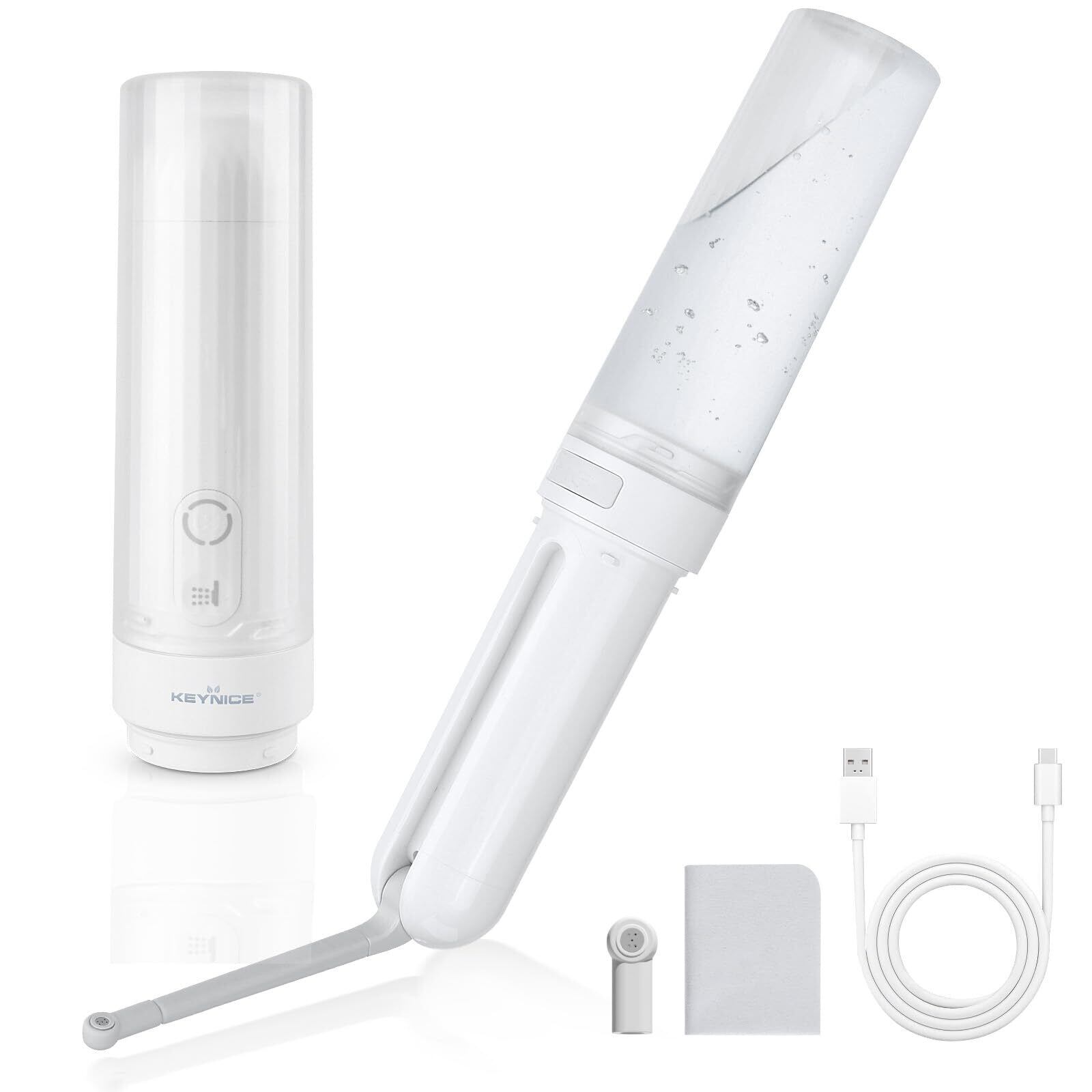 【特価商品】KEYNICE おしり洗浄器 アウトドア Type-C 充電式 携帯洗浄器 介護用 災害用 キャンプ 野営 登山 旅行グッズ 防災用 グッズ 軽量 ホワイト【正規品】 (USBケーブル1個、予備ノズル1個、専用袋付、クリーニングクロス付)