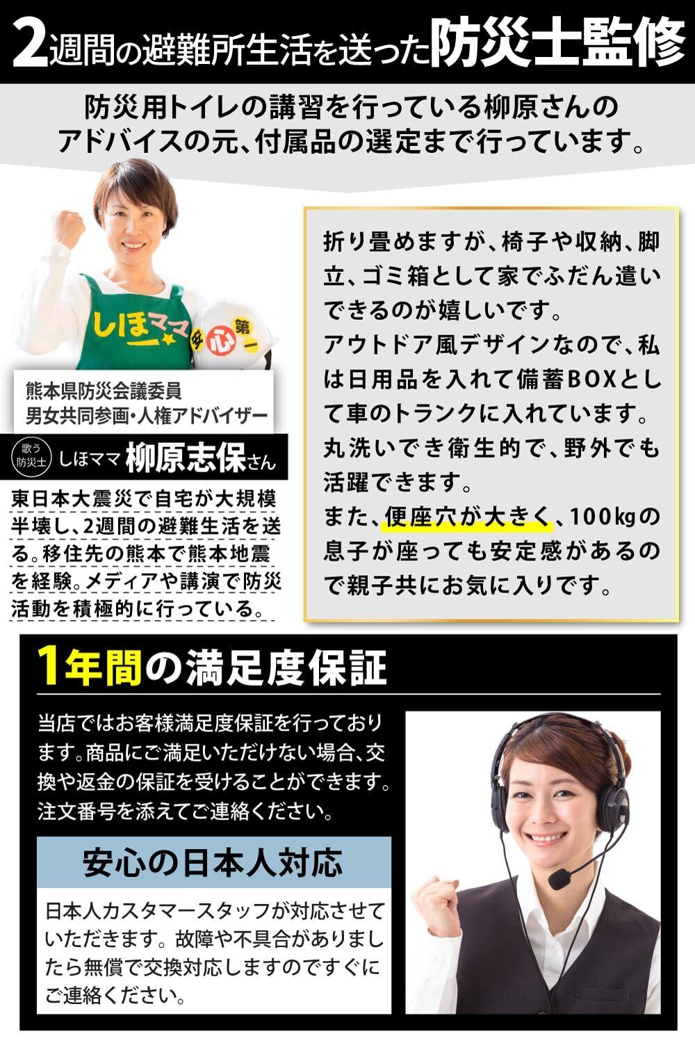 この簡易トイレは、防災用だけでなく、キャンプやハイキング、また建設現場での利用にも最適です。いざという時のために、ぜひ備えておきたいアイテムです。