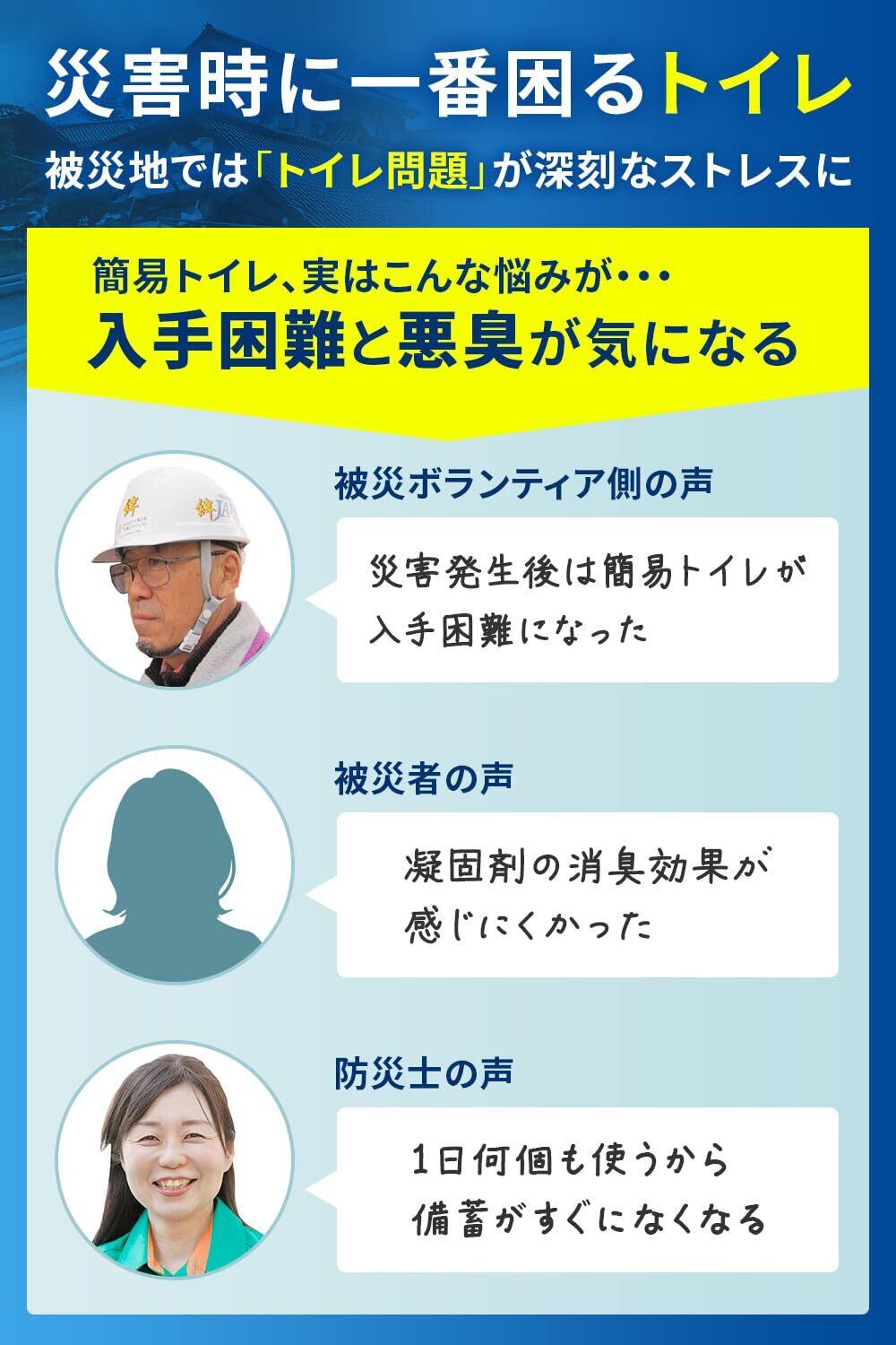 【被災者が作った防災トイレ】17歳で阪神・淡路大震災を経験した被災者が、防災士・現役ボランティア代表と共同監修。被災直後に崩れた「安心・便利さ」の記憶と、多くの被災者の声をもとに開発しました。