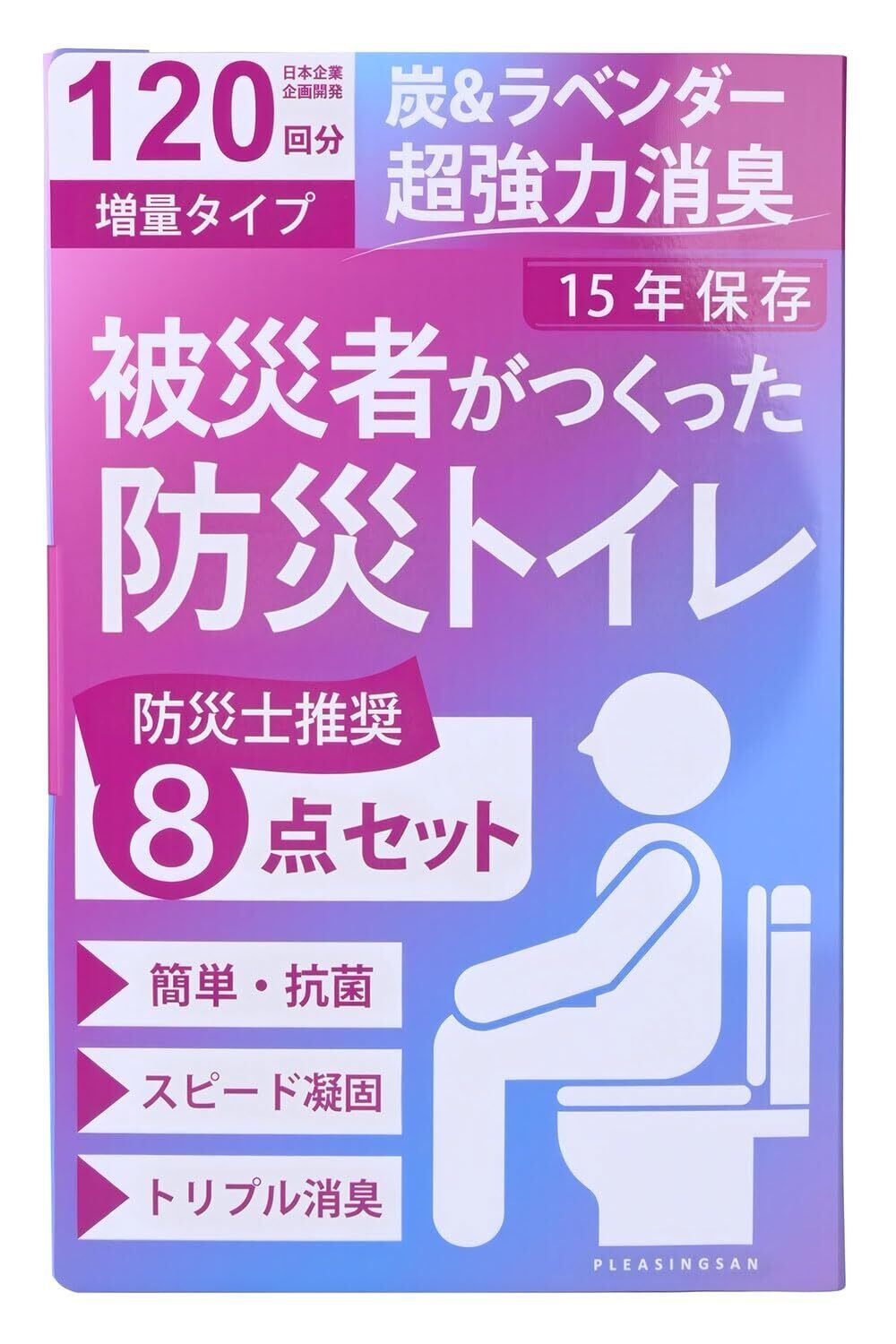 【新着商品】【被災者が作った防災トイレ】 PLEASINGSAN 簡易トイレ 車 災害 非常用 防災 凝固剤 トイレ セット グッズ オリジナル防災ブック付き 臭わない 袋付き 15年保存 【120回増量タイプ】 プリージングサン
