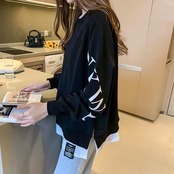 【在庫セール】[SeiunAn] トレーナー レディース ロンT スウェット 長袖 薄手 秋 冬 プルオーバー 春 トップス レイヤード 重ね着風 切り替え スリット入り 英字プリント ロゴ 長袖tシャツ フェイクツーピース ゆったり 大きいサイズ おしゃれ 韓国