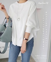 ◎ドルマン袖で肩まわりはゆったりと、ルーズな印象がこなれのあるニュアンスに。ドルマン袖で肩まわりはゆったりと、ルーズな印象がこなれのあるニュアンスに。身幅はワイドながらもジャスト丈に仕上げたコンパクトなシルエットでボトムスを選ばず着まわせる好バランス1枚です。