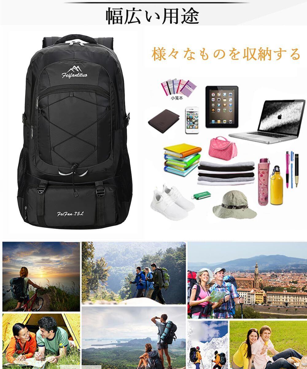 75Lの大容量にもかかわらず、軽量で扱いやすい設計です!高品質な素材を使用し、耐久性に優れた作りになっています。長時間の使用でも疲れにくく、持ち運びも快適です。旅行やアクティブなライフスタイルをサポートします。