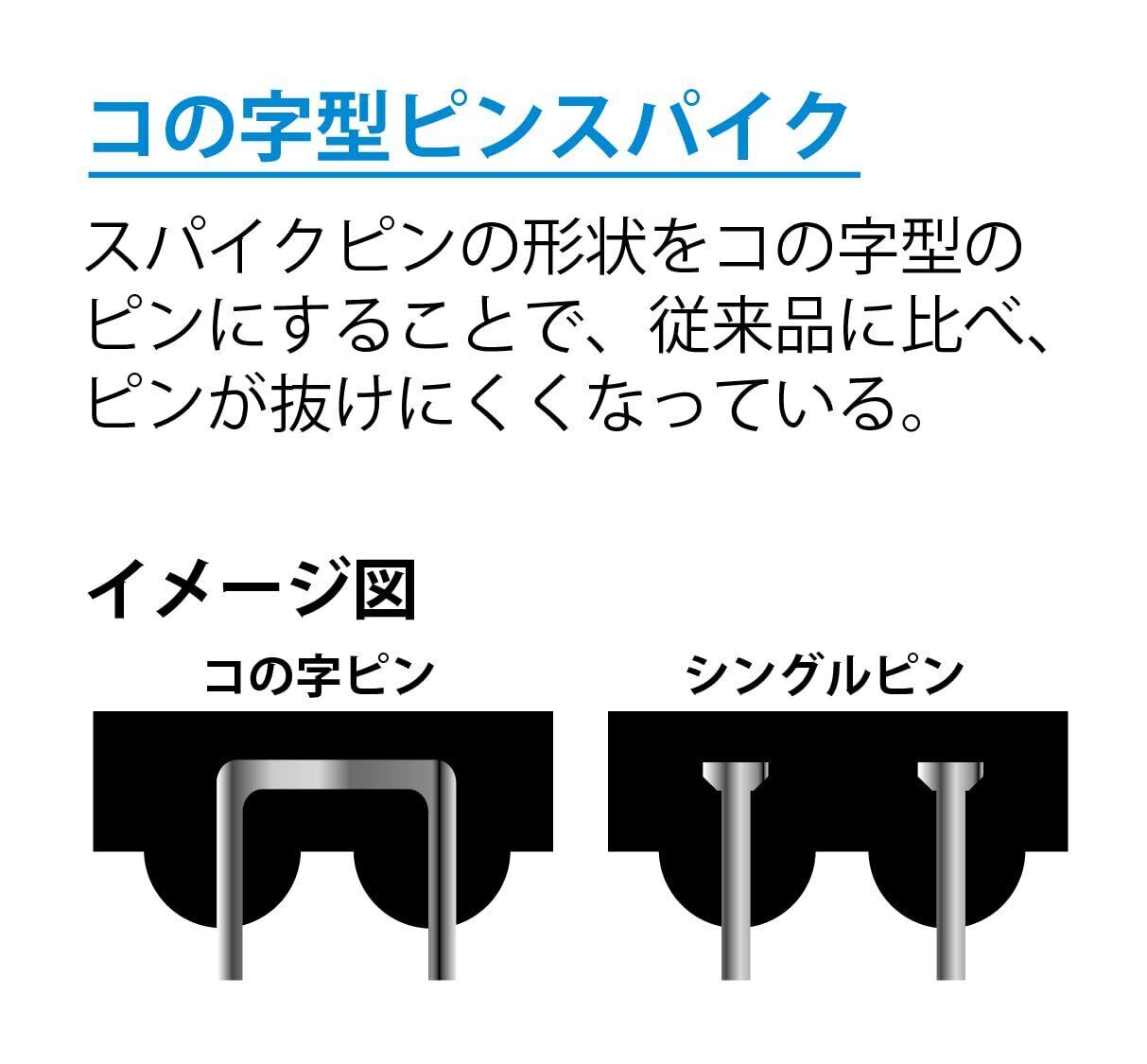 ステンレス製のコの字型ピンスパイクを採用しており、優れた耐久性を実現!錆びにくい設計で、長時間の使用にも耐えうる一品です。過酷な環境でも安心して使用できます。