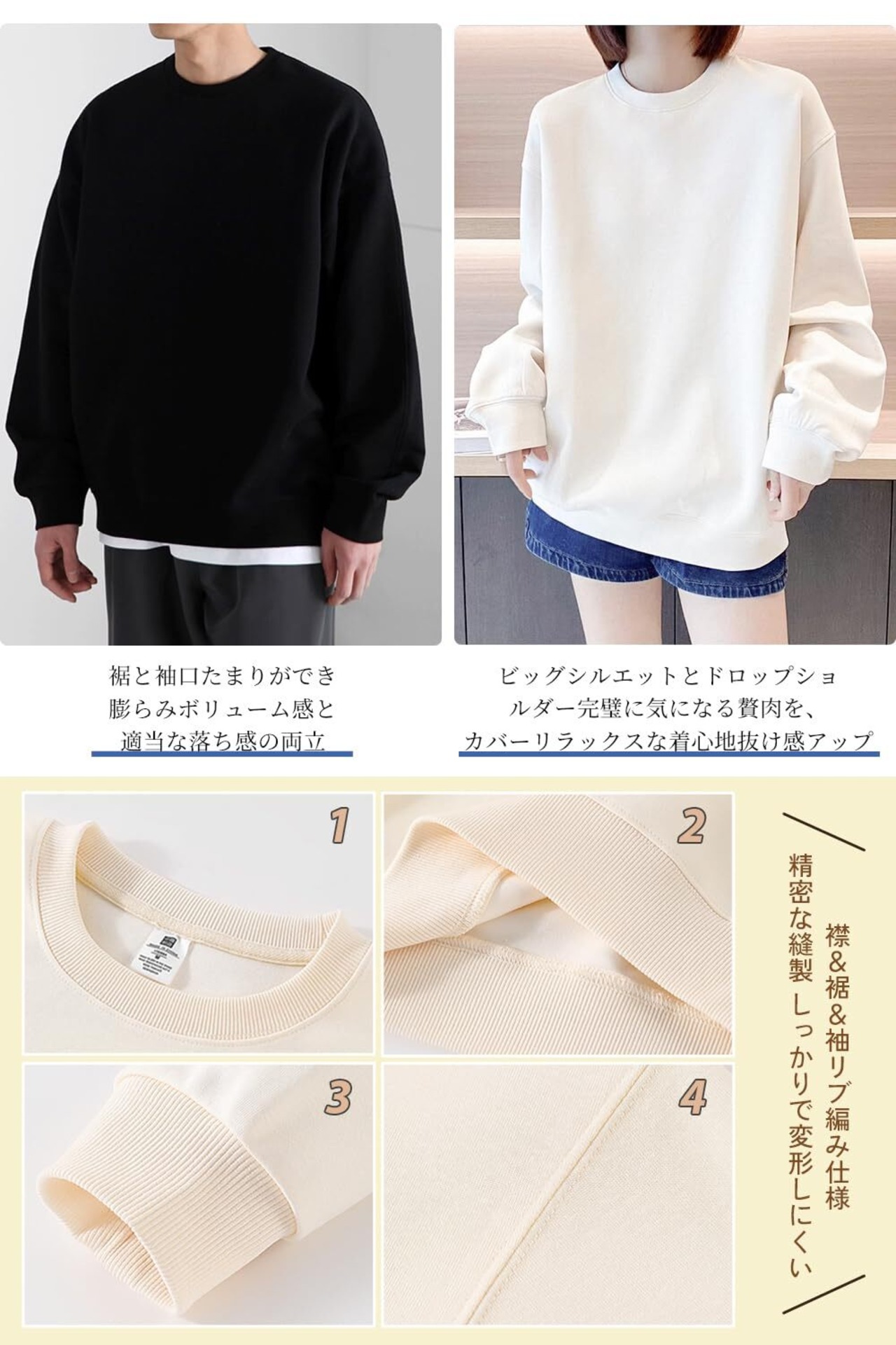 【2022最新】[Mmlnrc] トレーナー メンズ 長袖 11.3オンス 綿 トップス レディース 春秋冬 丸襟 ロングtシャツ ビッグシルエット 体型カバー プルオーバー 無地 カジュアル パーカー ゆったり 着痩せ スウェット クルーネック 男女兼用 スポーツウェア