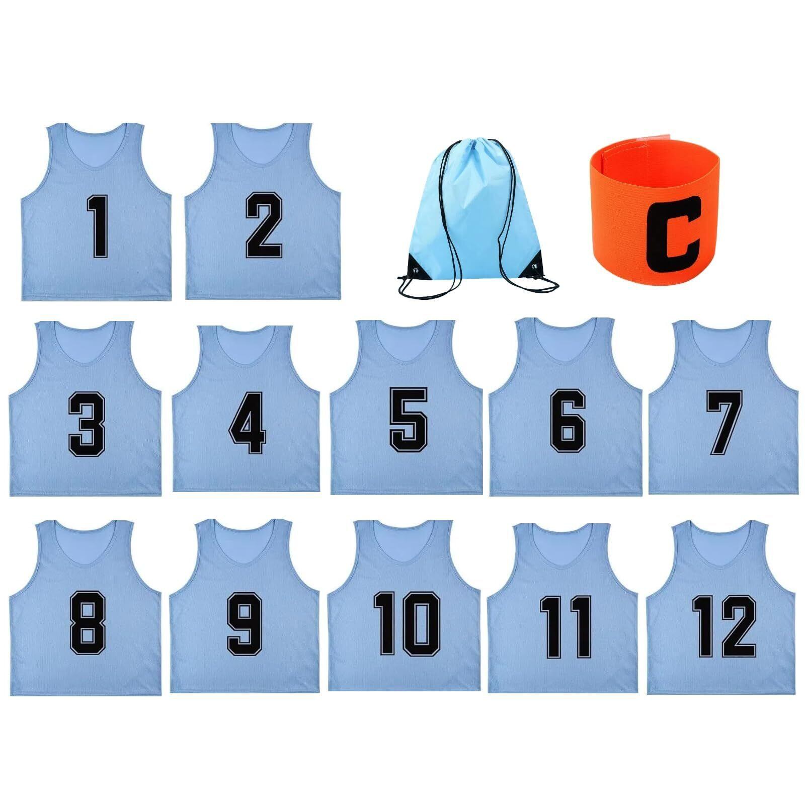 【在庫セール】[TOEPODO] ビブス大人用子供用12枚表と裏に番号 1 ~ 12巾着収納袋とキャプテンの腕章付きスポーツビブス、サッカービブス、軽量、快適、通気性、速乾性、男女兼用、バスケットボール、サッカー、学校、自治体に適しています、クラブ、グループ活動