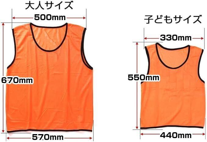 【視認性が良いカラー展開】レッド、ブルー、イエロー、オレンジ、ブラック、イエローグリーン、グリーン、ピンク、ネイビー、パープルの10色展開 です。(※イエローグリーンはイエローに近いカラーとなります為、イエローと併せてのご使用はおすすめ出来ません。 )遠くから見ても視認性も良いです。 【収納バッグ付き】 移動する際に便利なビブス収納バッグ付きです。しっかりと閉まりますので汗など臭いが漏れにくいです。