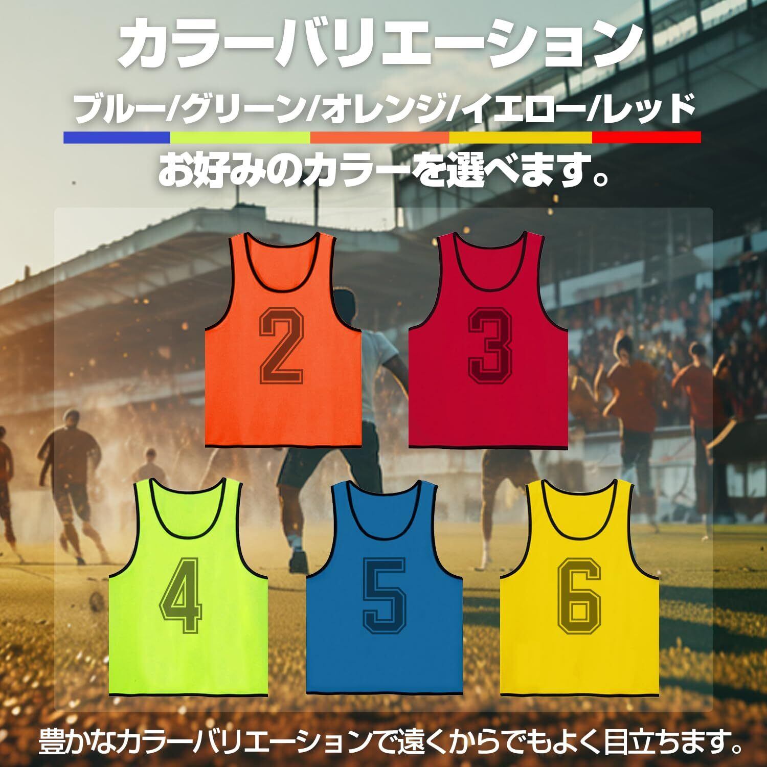 - セット内容:ビブス6枚(番号入り)