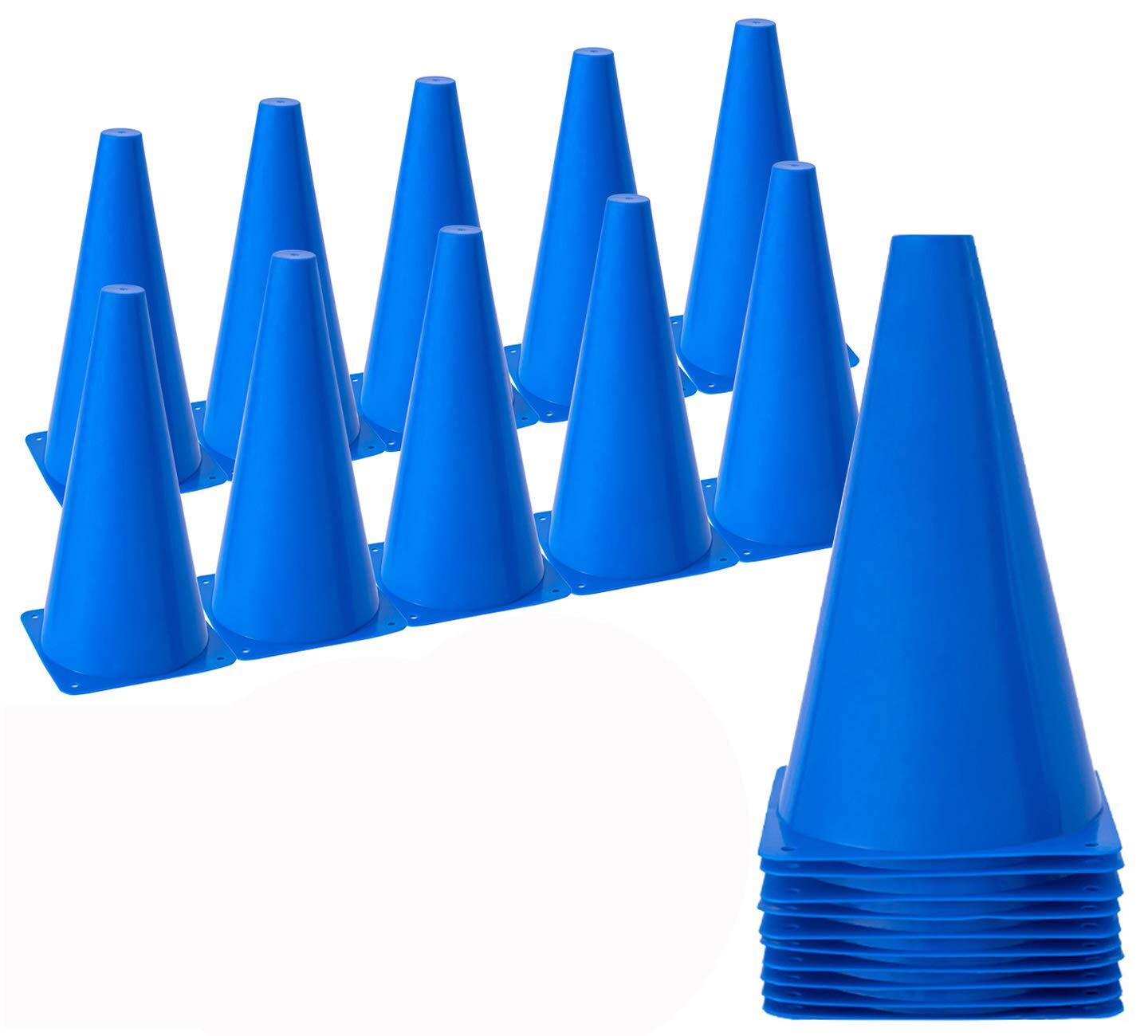 BiAnYC 10本セット 23cm マーカーコーン 青,カラーコーン ミニ 青,ミニコーン,サッカー コーン,三角コーン ミニ, サッカー 野球 テニス フットサル 練習コーン,ボールスポーツ 団体競技や部活 陸上競技 運動会 スポーツコーン,収納袋付き