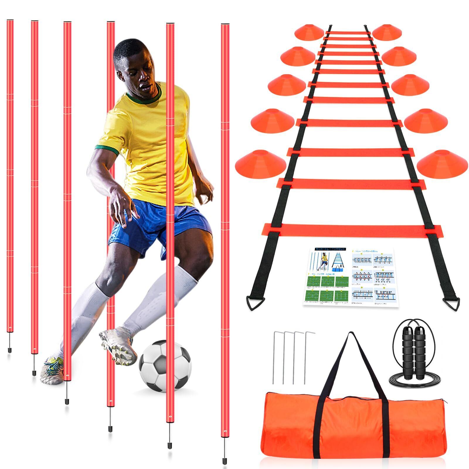 yazi サッカー トレーニングラダー 敏捷性 トレーニングポール マーカーコーン 瞬発力 野球・サッカー練習 トレーニングコーン 持ち運び 軽量 練習用品 初心者 縄跳び・収納袋付き サッカー練習セット