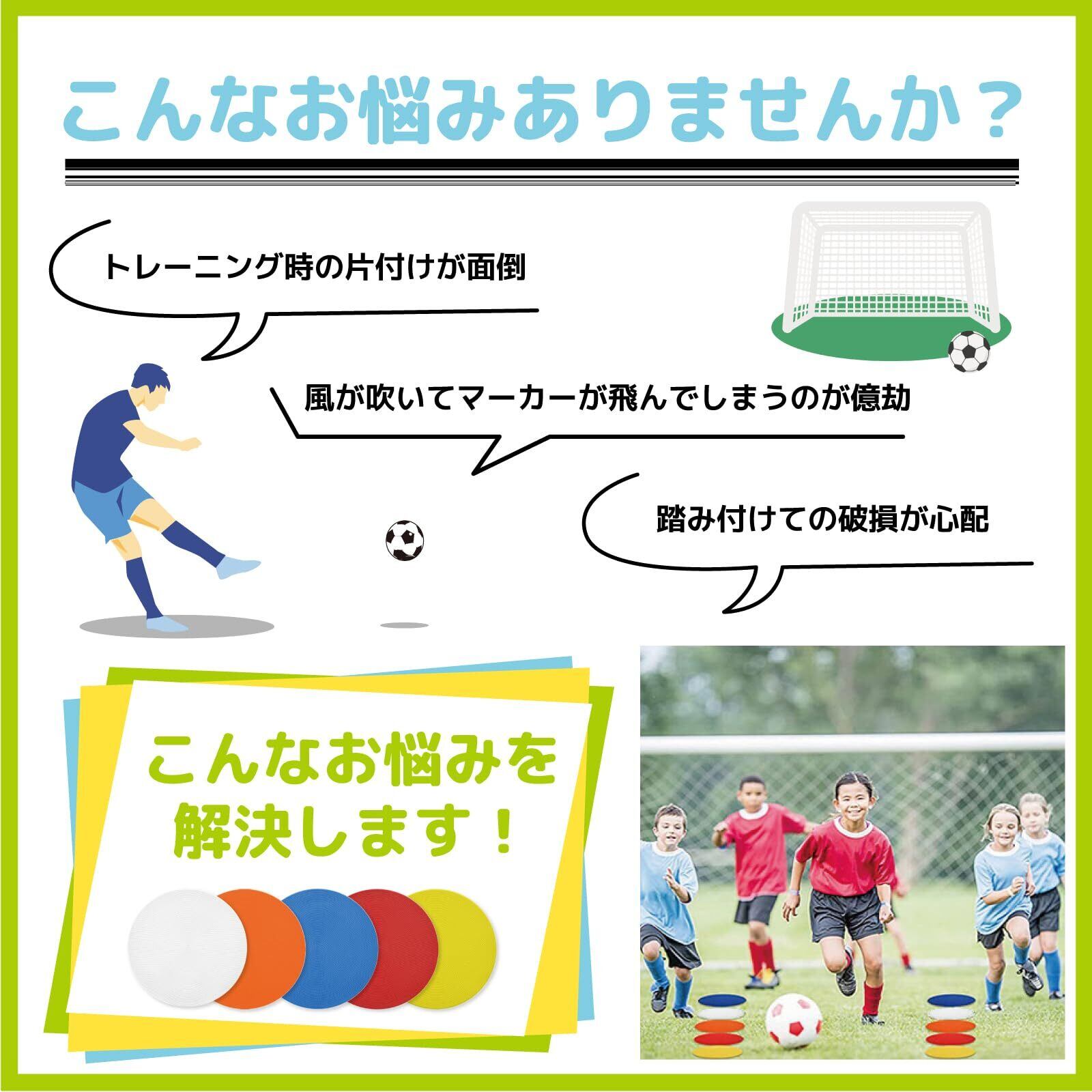 このフラットマーカーは、サッカーやフットサルだけでなく、様々なスポーツのトレーニングにも適応。チーム練習や個人トレーニングに欠かせないアイテムです。