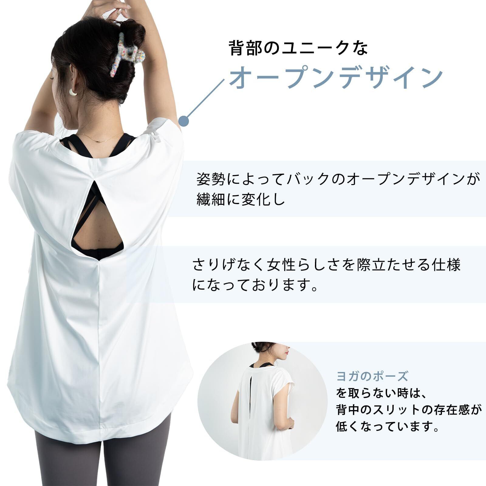 [iito.seasons] ヨガウェア レディース 美背中 背中開き ゆったり トップス 体型カバー 冷感シャツ ロング丈 丈長 半袖 スポーツ ルームウェア フィットネス トレーニング 吸汗速乾 UVカット 紫外線対策 薄手 夏 おしゃれ