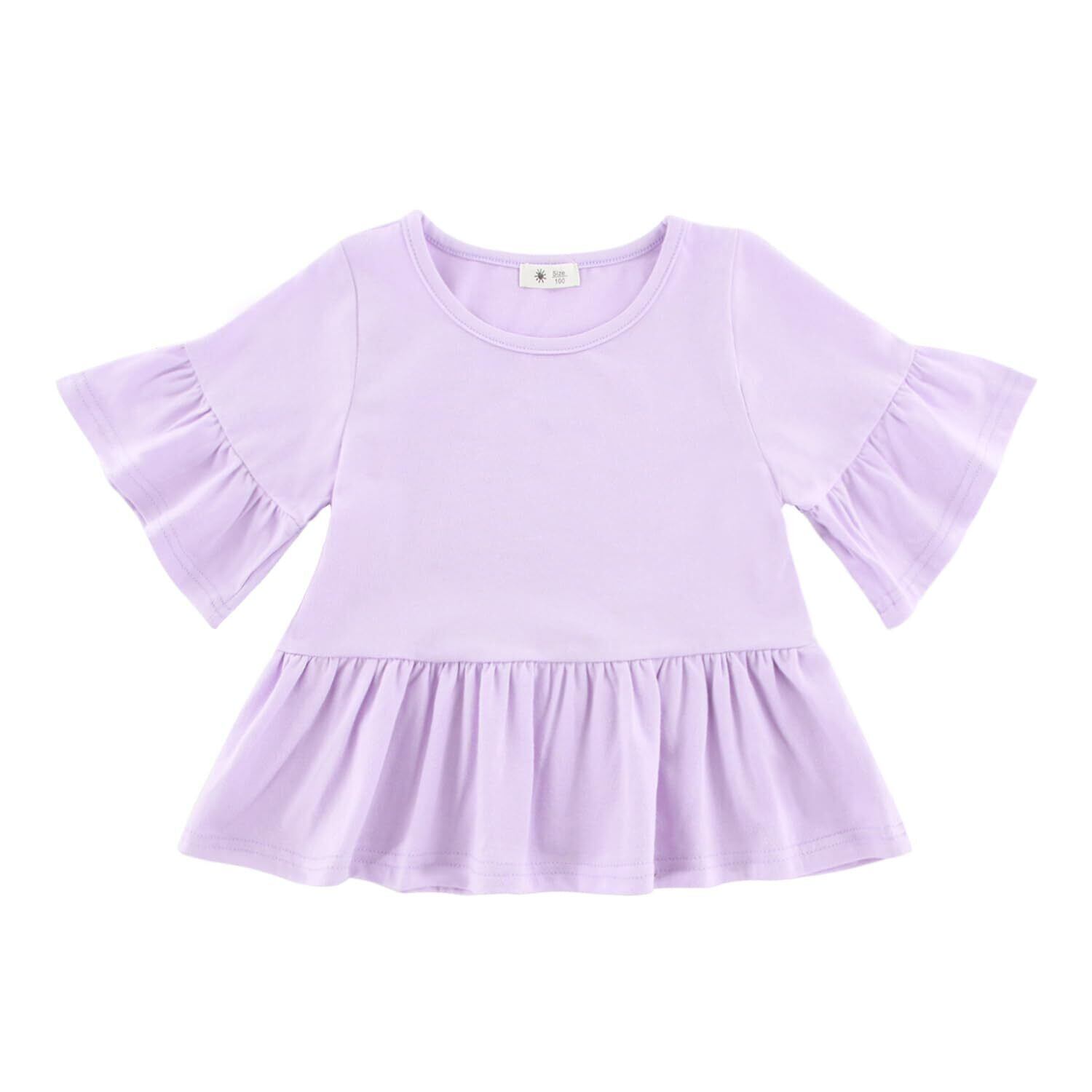 ひらひらのフリル袖が可愛い パフスリーブとフリル裾でお子様の可愛さを引き出してくれました。たくさんのキッズの中でもダントツで目立せ!ドレスのようなデザインはワンポイントです。散歩、海水浴、ピクニック、旅行など、オシャレな夏を楽しんで!